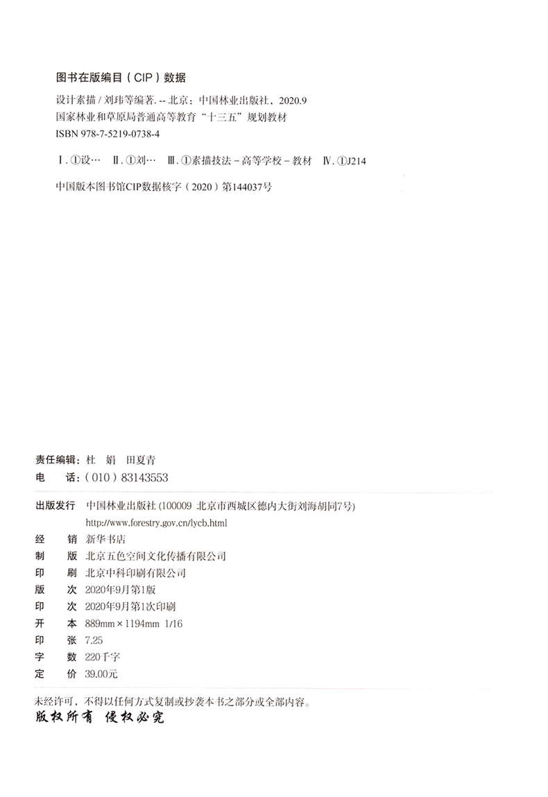 设计素描 刘玮//刘华//刘俊哲//湛磊//郭继业(国家林业和草原局普通高等教育十三五规划教材) 0738 中国林业出版社