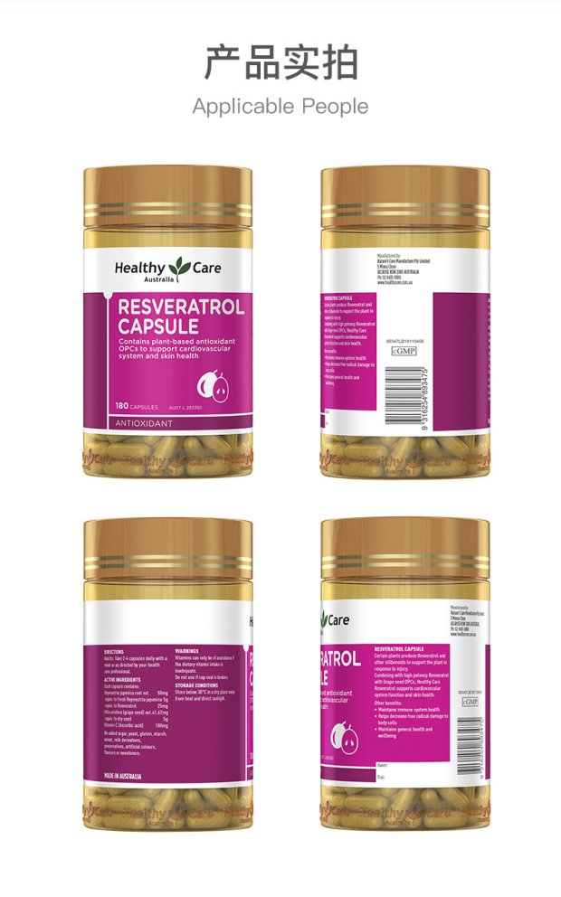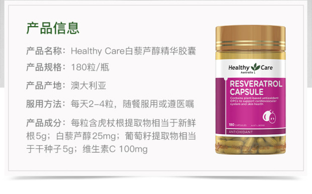 【跨境】HealthyCare白藜芦醇胶囊 180粒