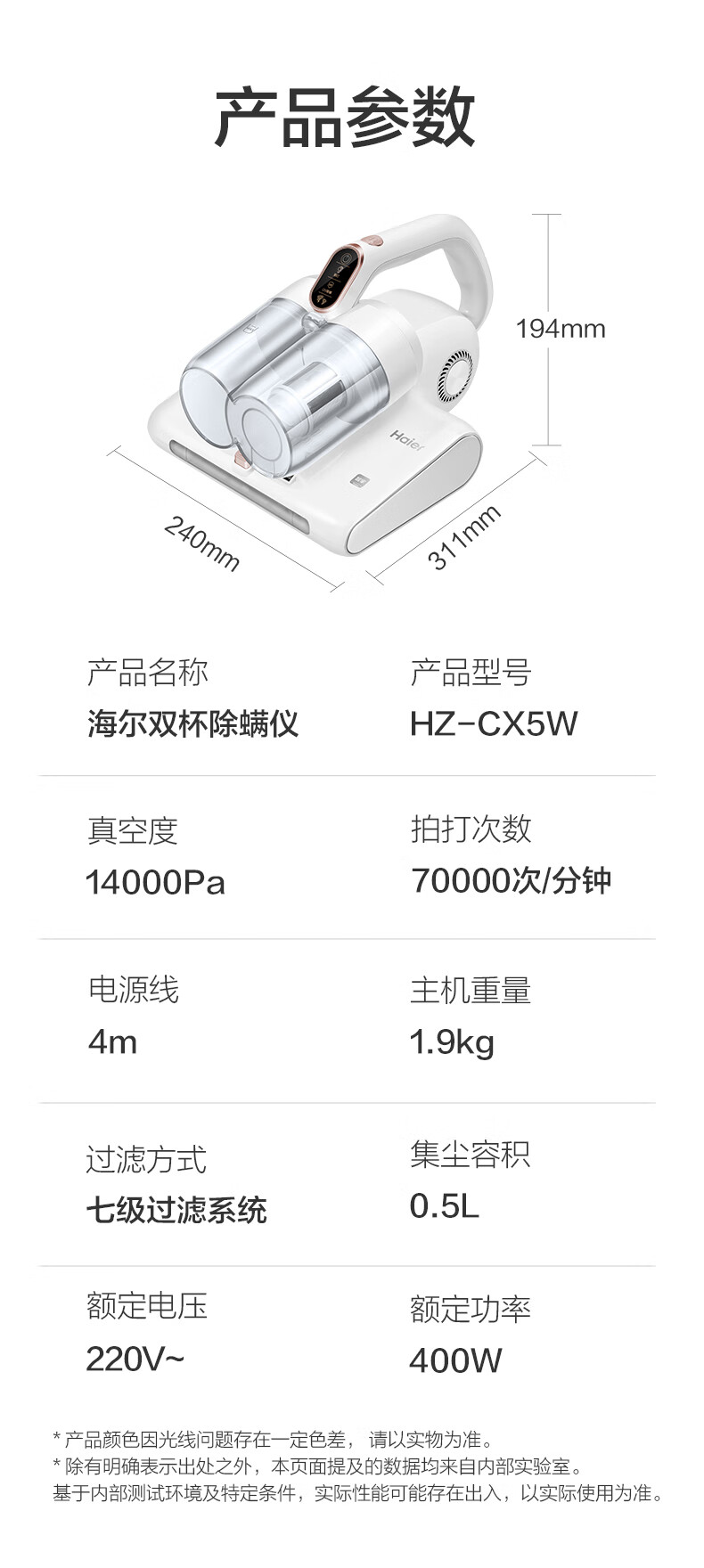 海尔(Haier) 除螨仪 紫外线杀菌神器 HZ-CX5W