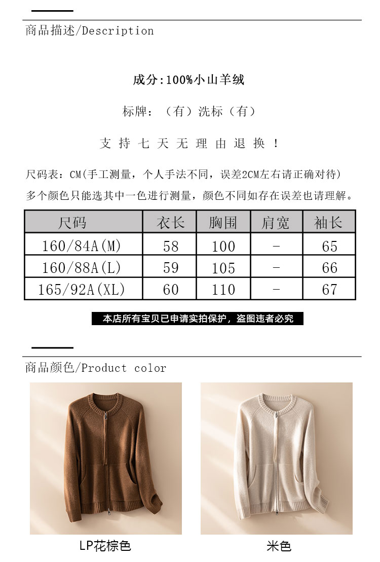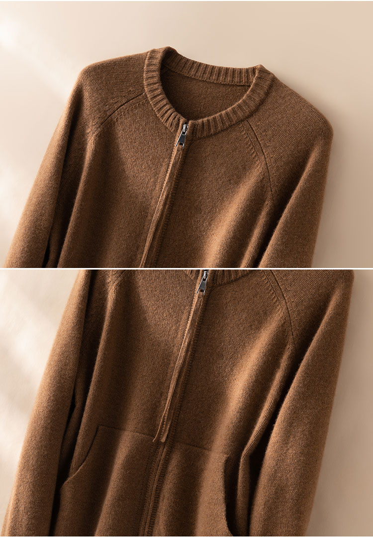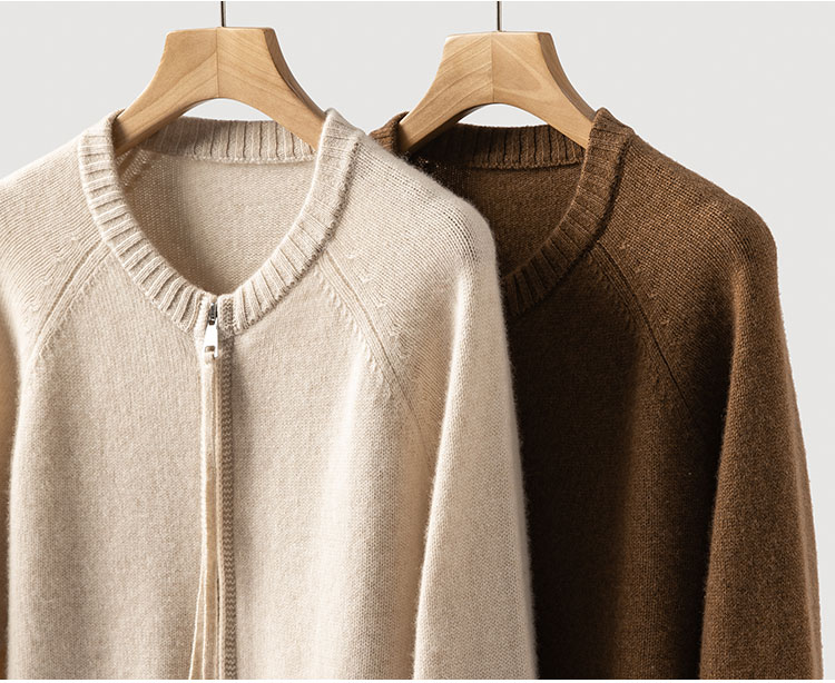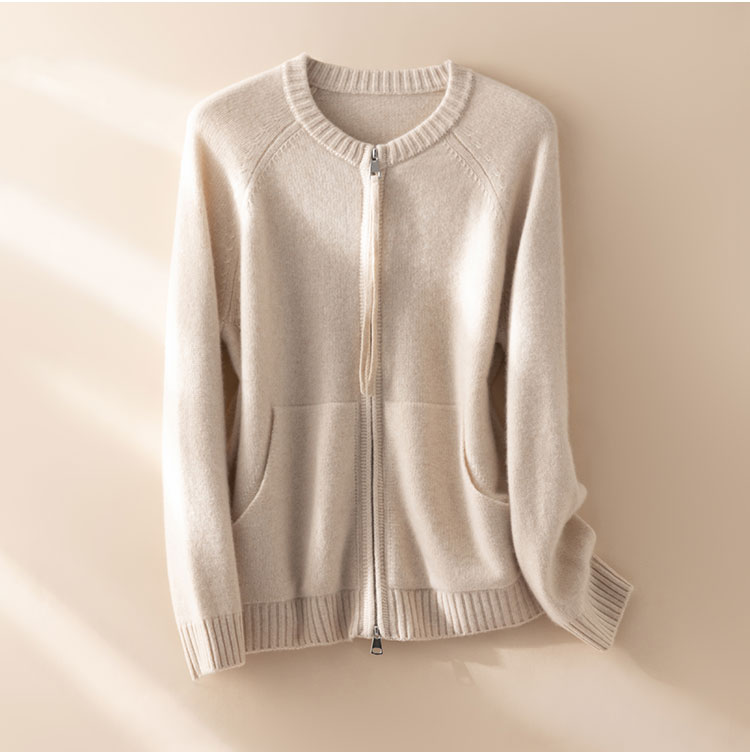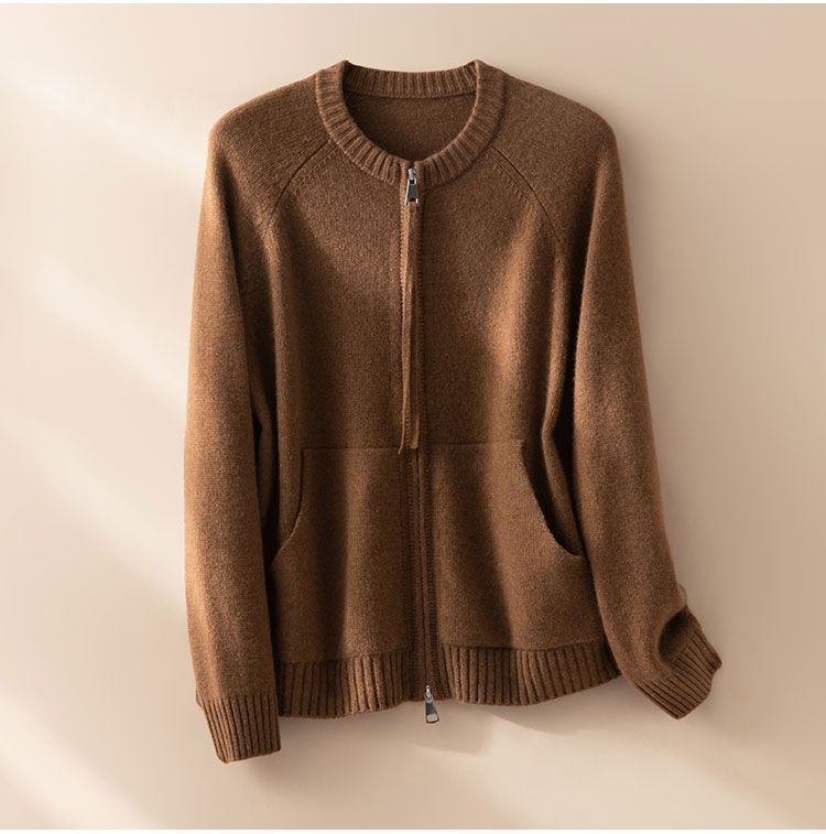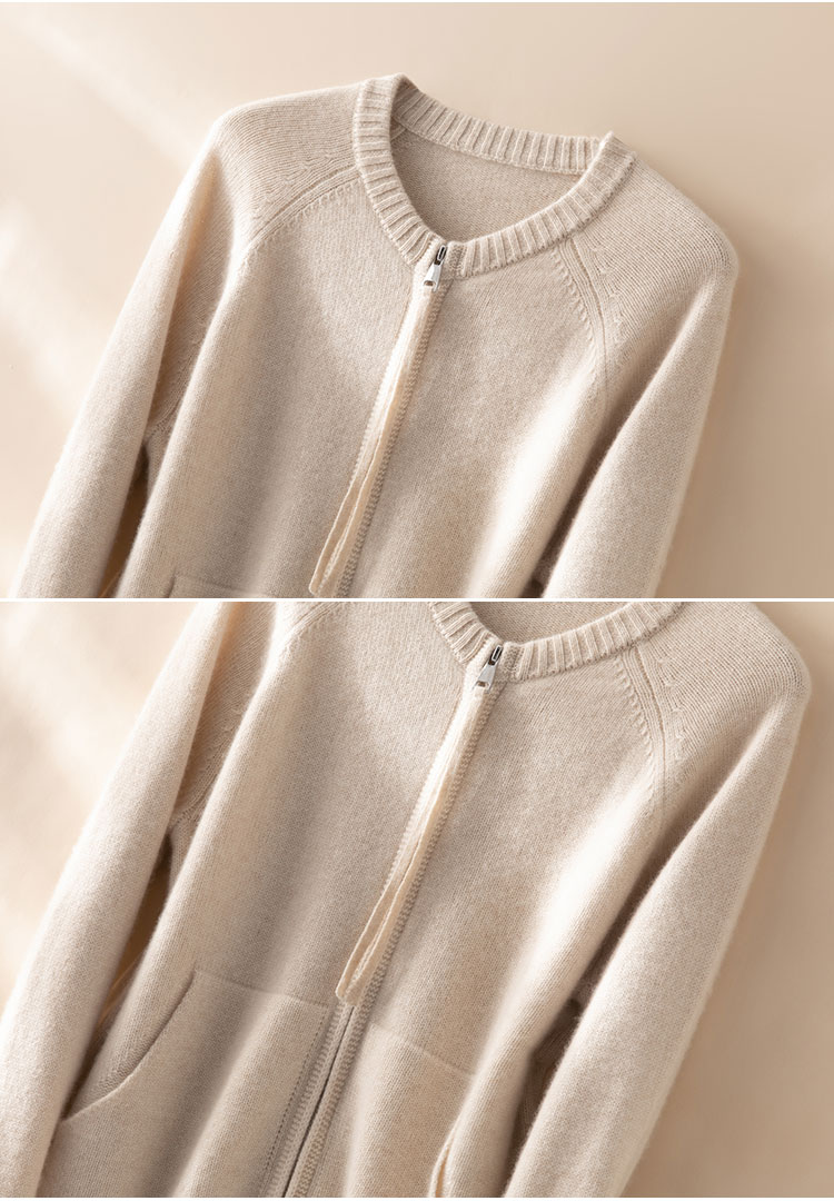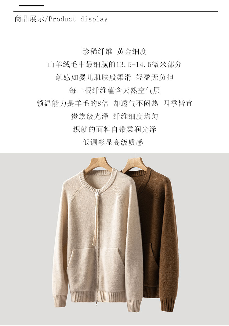 100%Baby小山羊绒~极简双拉链圆领插肩开衫外套BABY260525