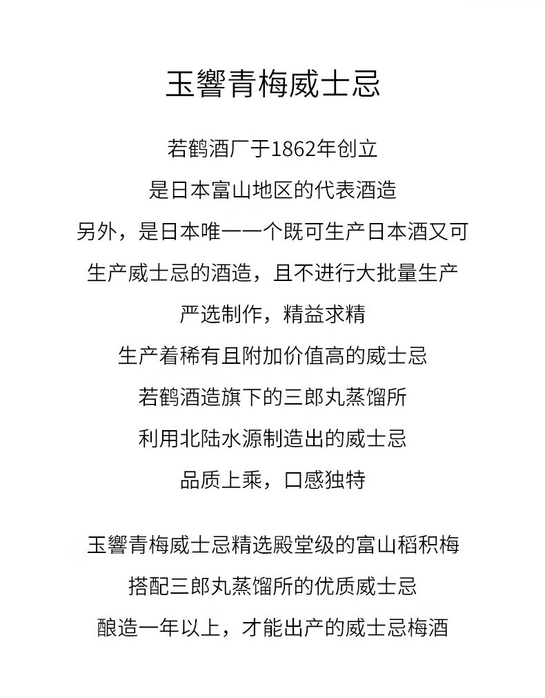 玉響青梅威士忌 白标720ml【保质期:2044年1月23日】