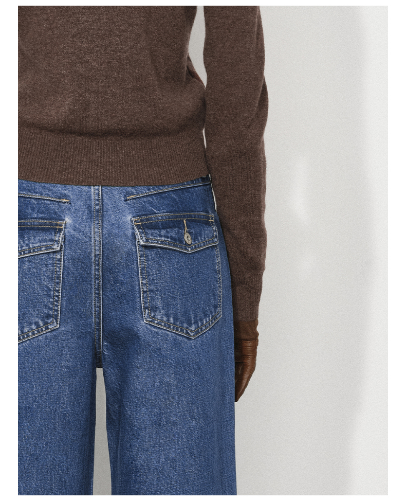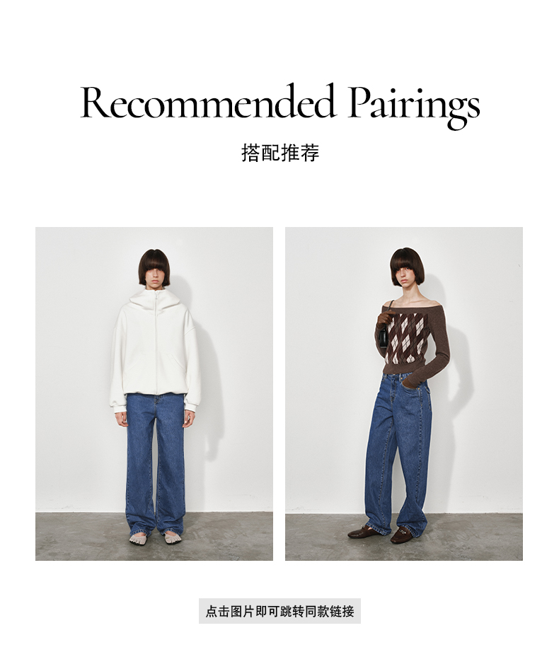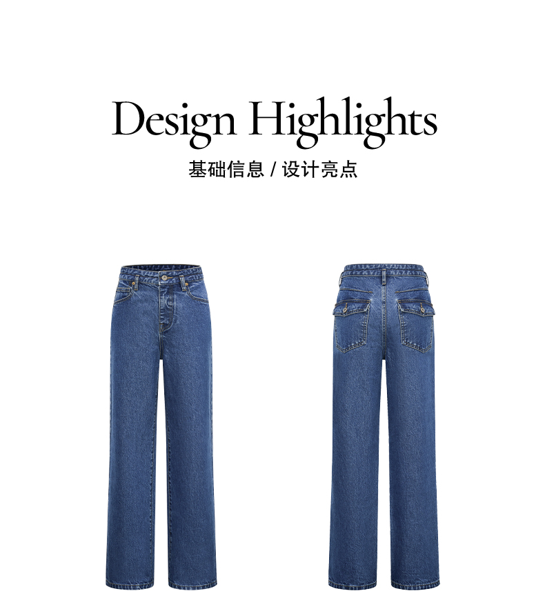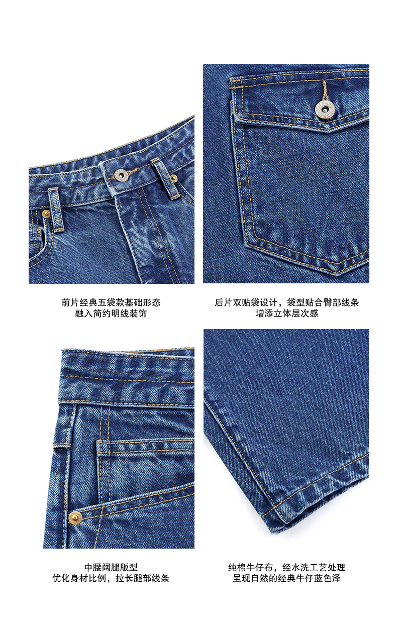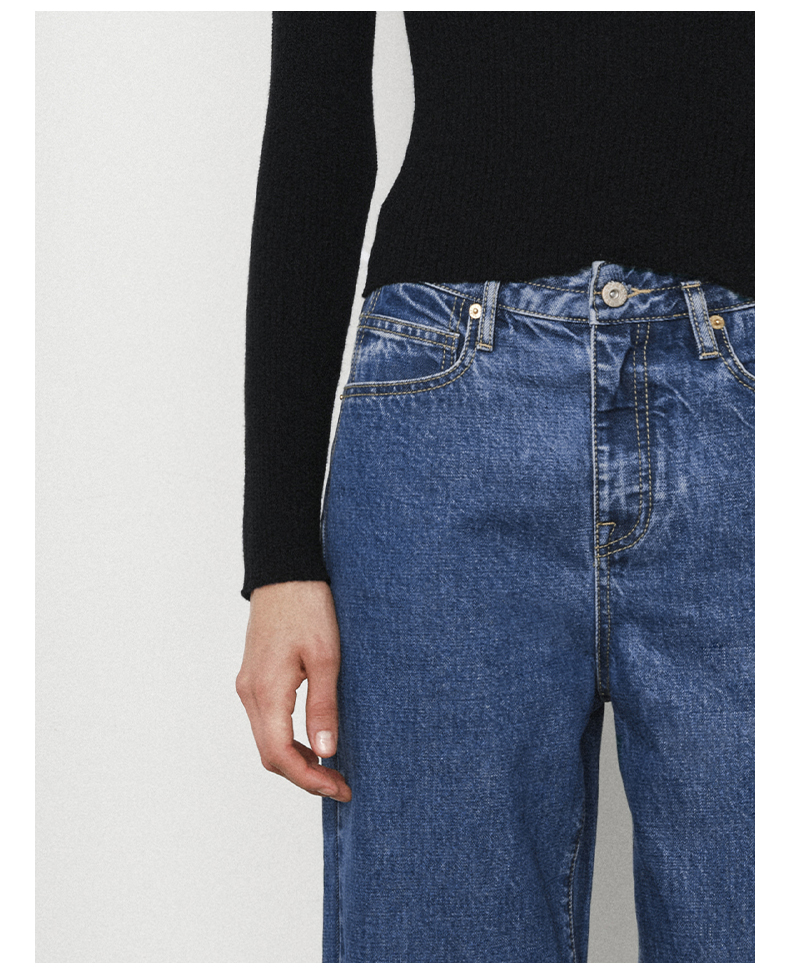 NUTH复古蓝水洗宽松阔腿直筒牛仔裤女(发货时间同步天猫)