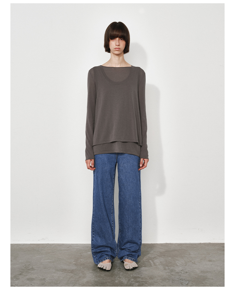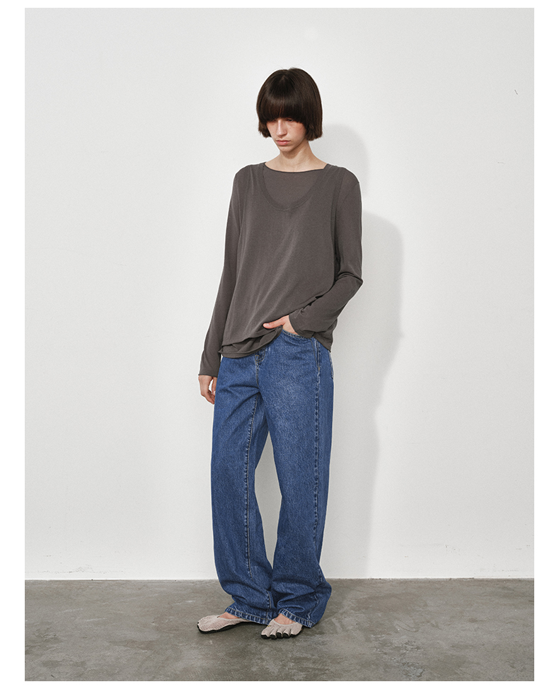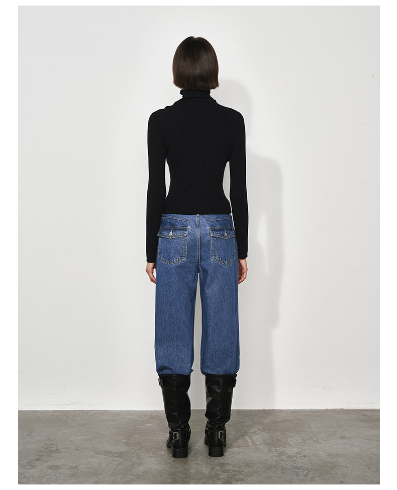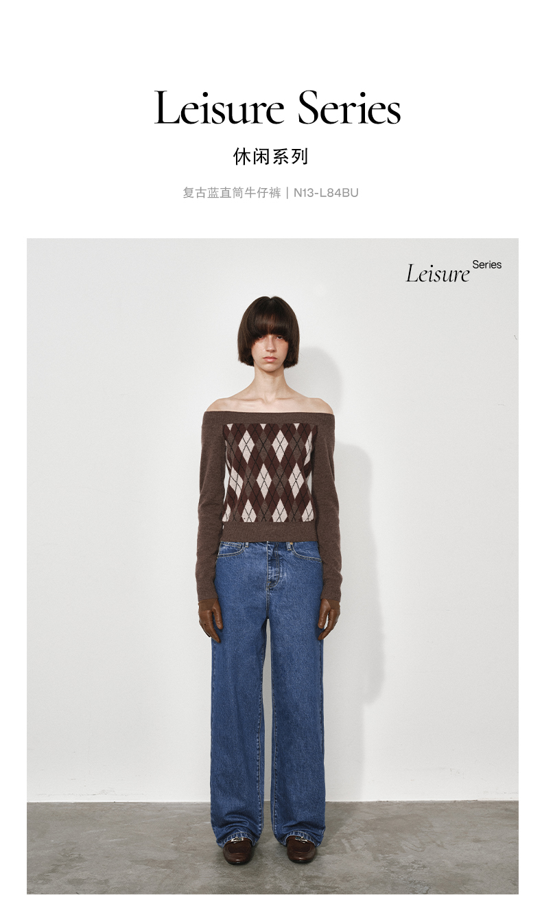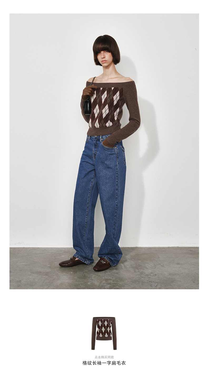 NUTH复古蓝水洗宽松阔腿直筒牛仔裤女(发货时间同步天猫)