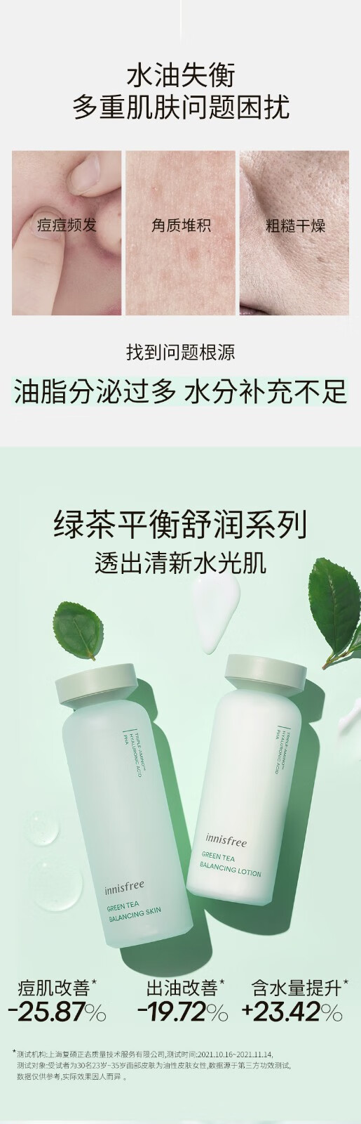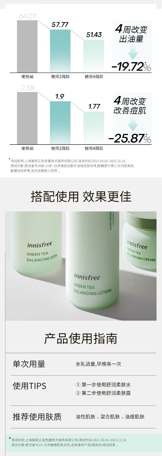 Innisfree悦诗风吟 新绿茶精萃平衡水乳套装 400ml/盒
