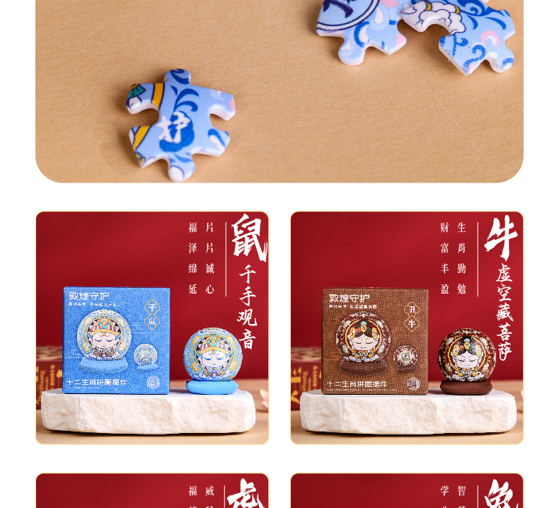 敦煌研究院 【敦煌十二生肖守护菩萨拼图摆件】 创意diy拼图桌面摆件
