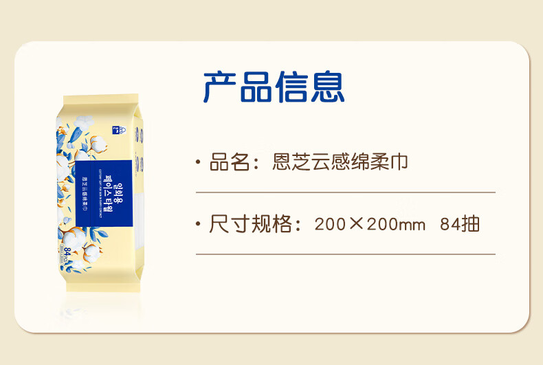 【3包装】恩芝云感绵柔巾加厚干湿两用柔韧呵护亲肤抽取式洗脸巾 84抽/包