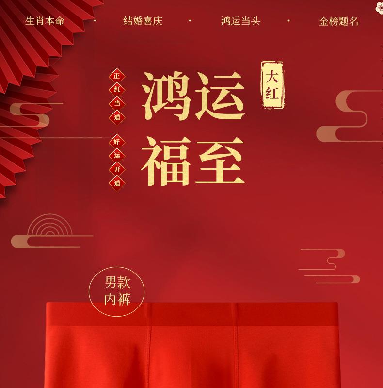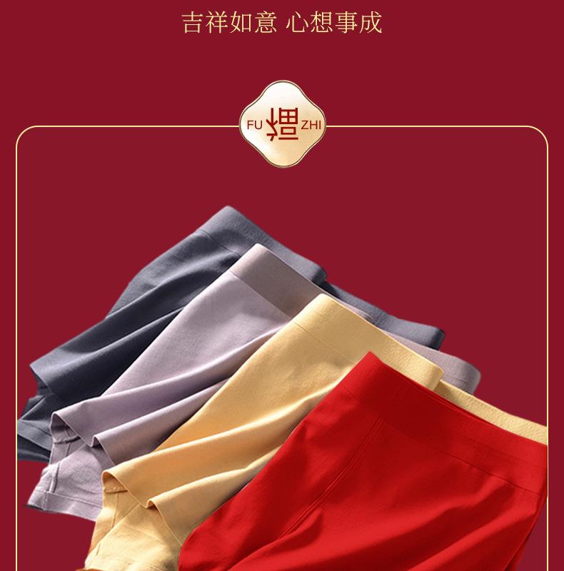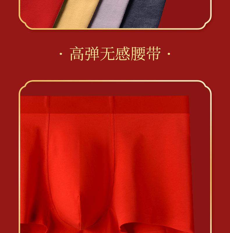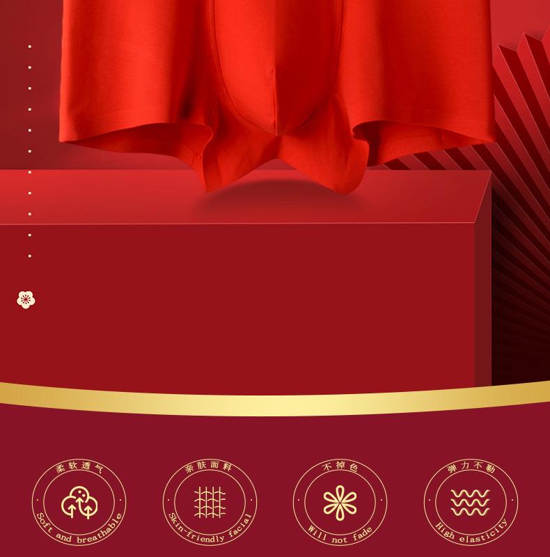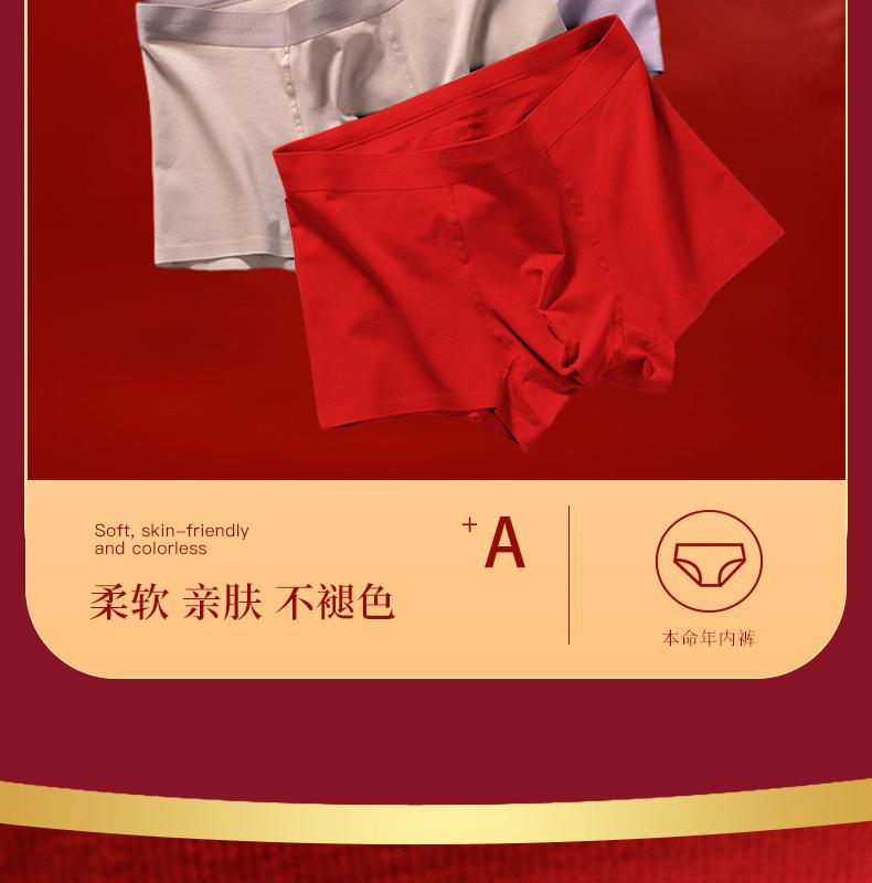 【马年好运】本命年红色内裤男士纯棉60支长绒棉马年平角裤无痕抑菌四角内裤男