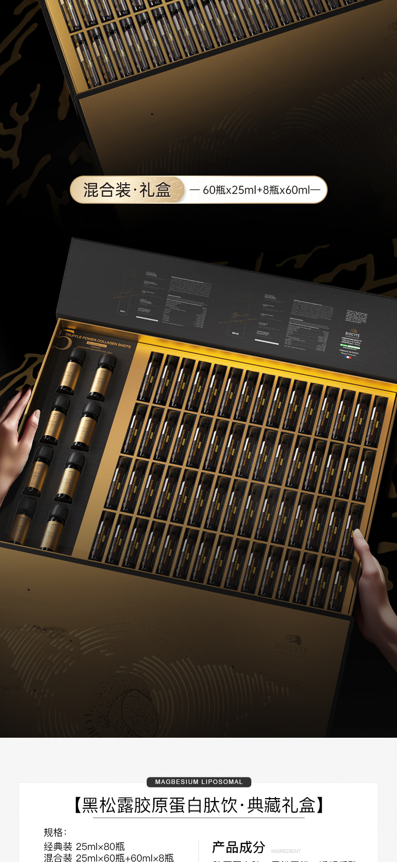 【营养师专属】法国碧维斯Biocyte黑金骨胶炮黑松露胶原肽饮礼盒60ml*4支