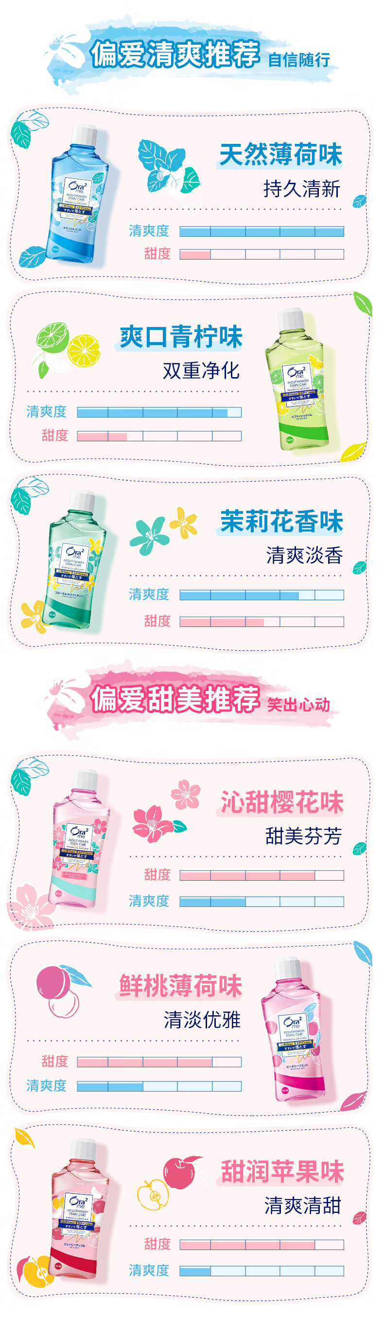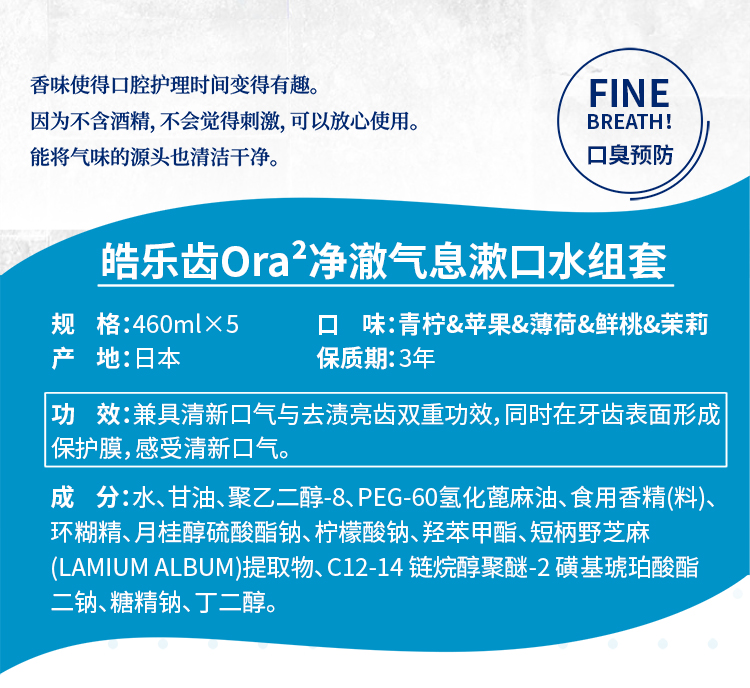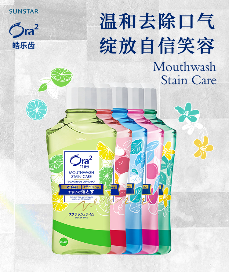 皓乐齿(Ora2)无酒精净澈气息亮白牙齿薄荷清新口气水果味漱口水 460ml/瓶
