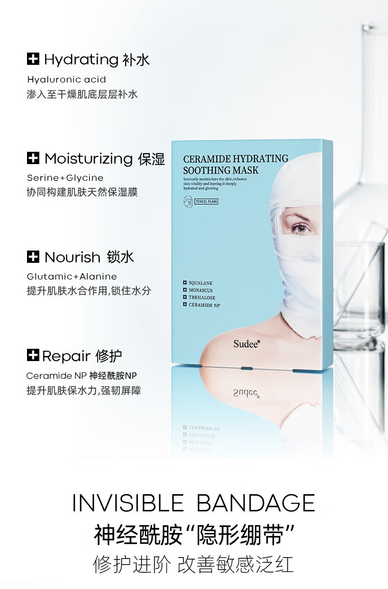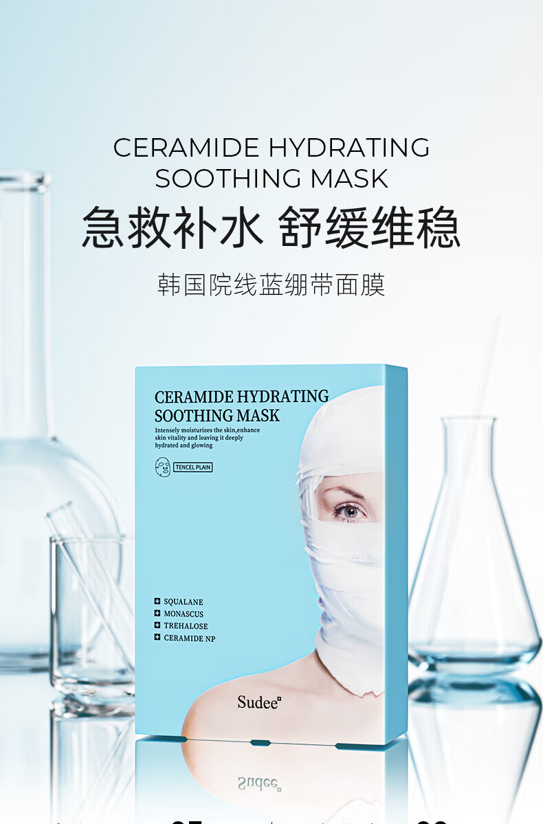 【3盒装】Sudee素玳 蓝绷带面膜急救补水保湿氨基酸面膜玻尿酸女深锁水 5片/盒