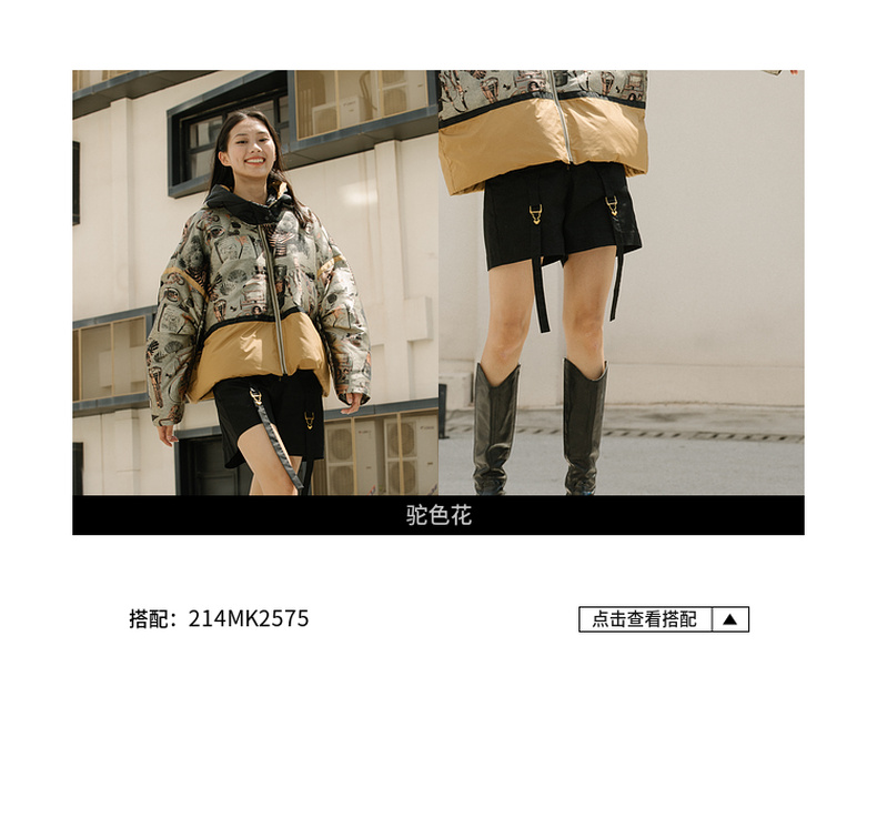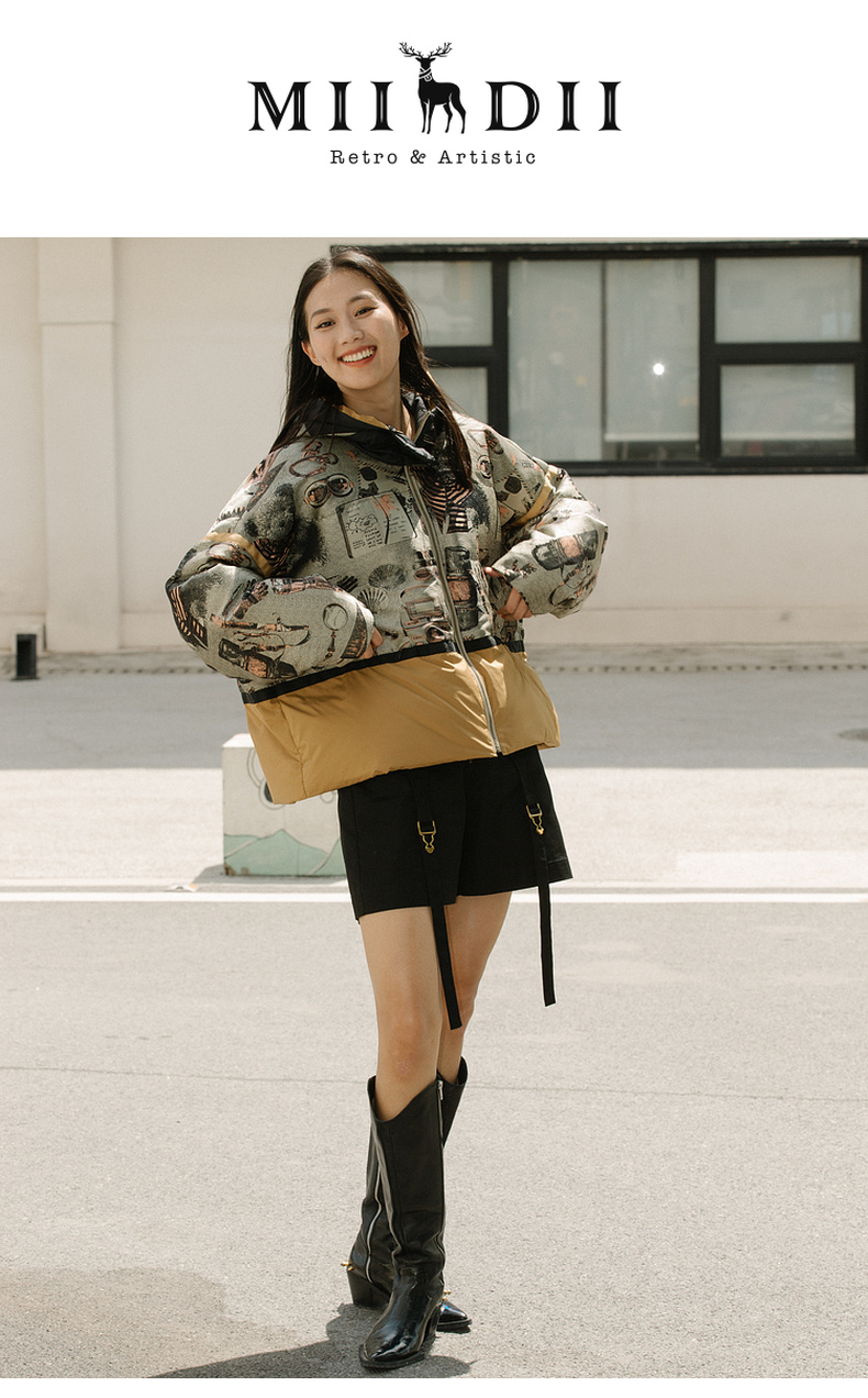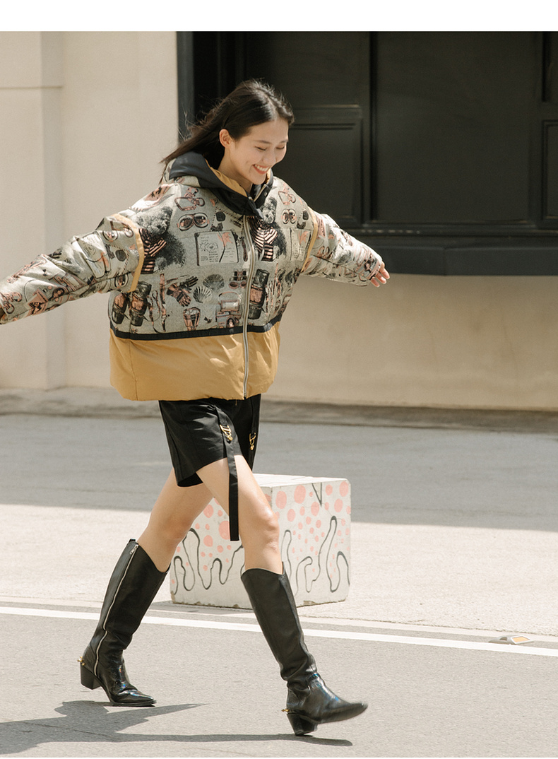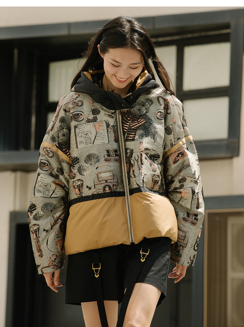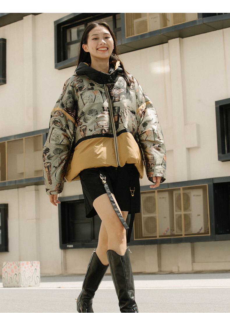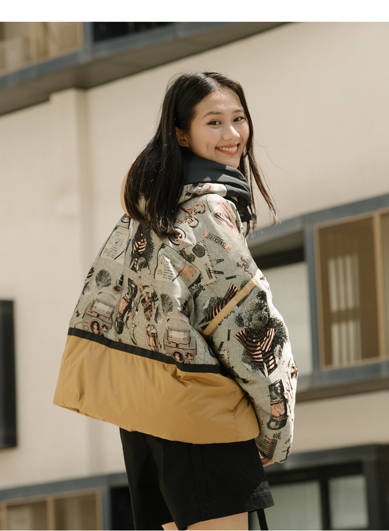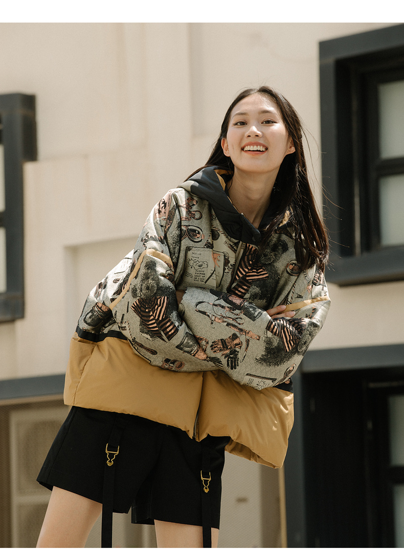 谜底2021冬新款休闲宽松落肩连帽短款羽绒服女面包服214GY2456