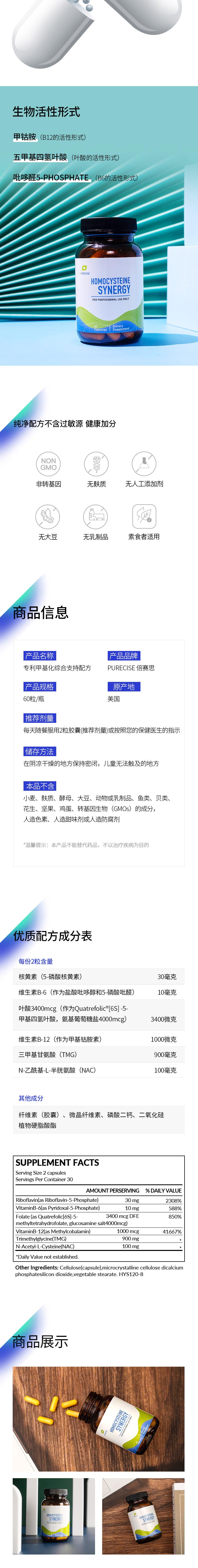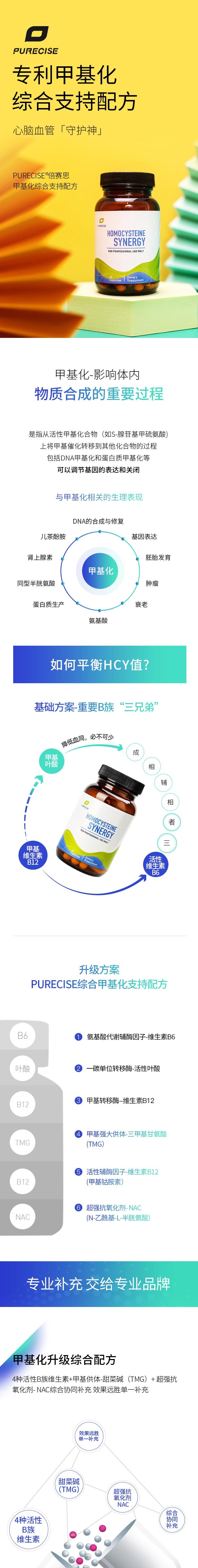 【平衡同型半HCY改善甲基化】Homocysteine Synergy 60粒 同型半指标 平衡HCY 活性甲基专利叶酸+活性B6+甲基B12 打通甲基化循环 Purecise 倍赛思