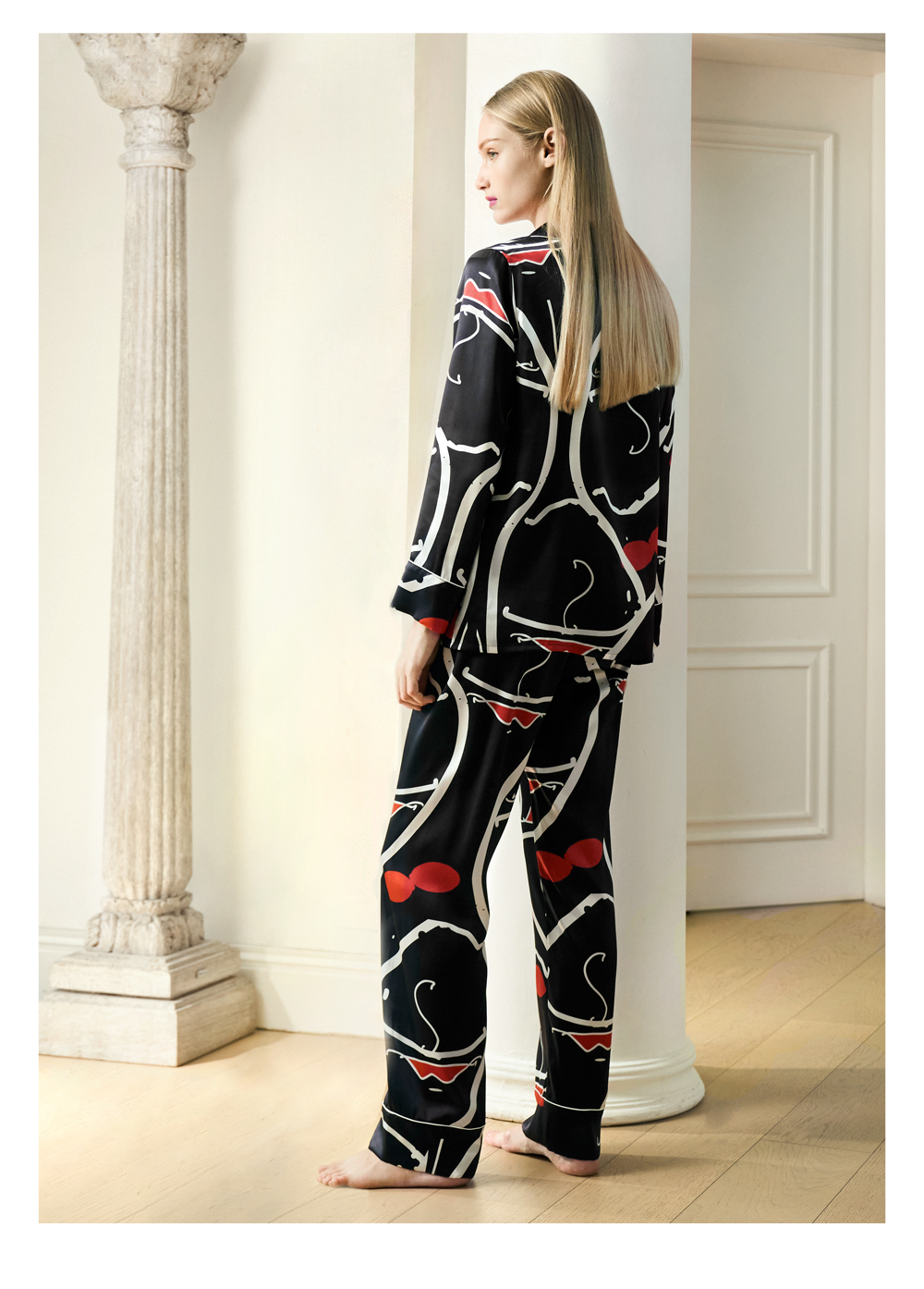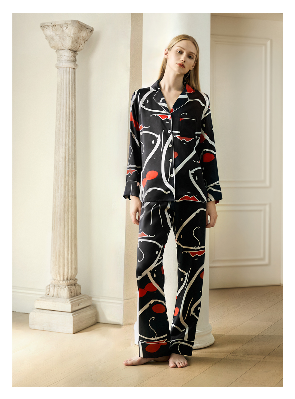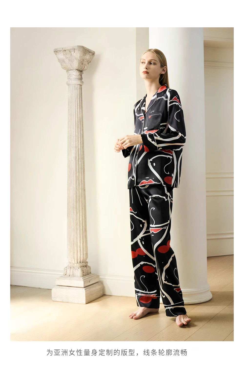 Solo seta女士真丝睡衣印花套装桑蚕丝家居服2025秋季新款丝绸