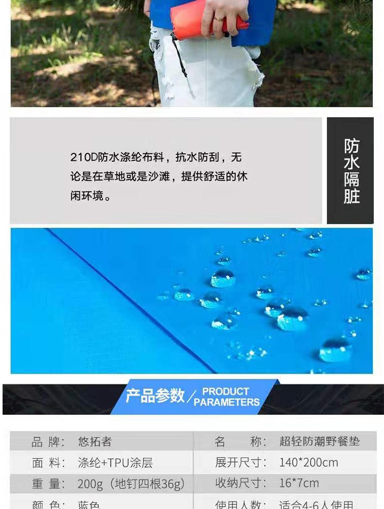 悠拓者 沙滩垫野餐垫户外轻便折叠防潮垫薄款收纳便携 YT-DZ005