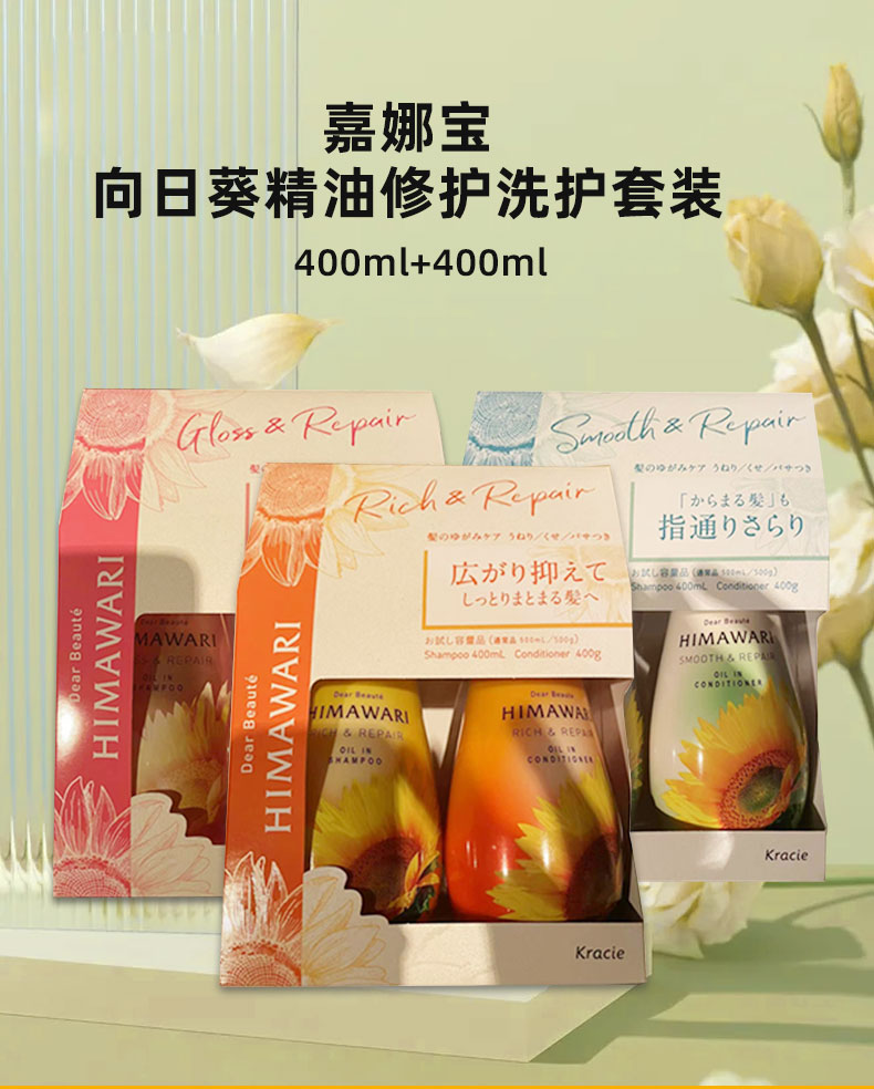 【保税仓】嘉娜宝向日葵无硅柔顺修护洗发水400ml+护发素400ml/套