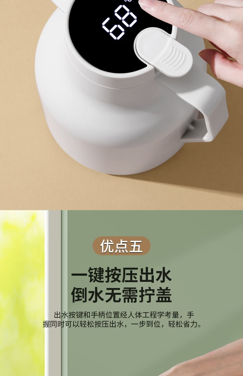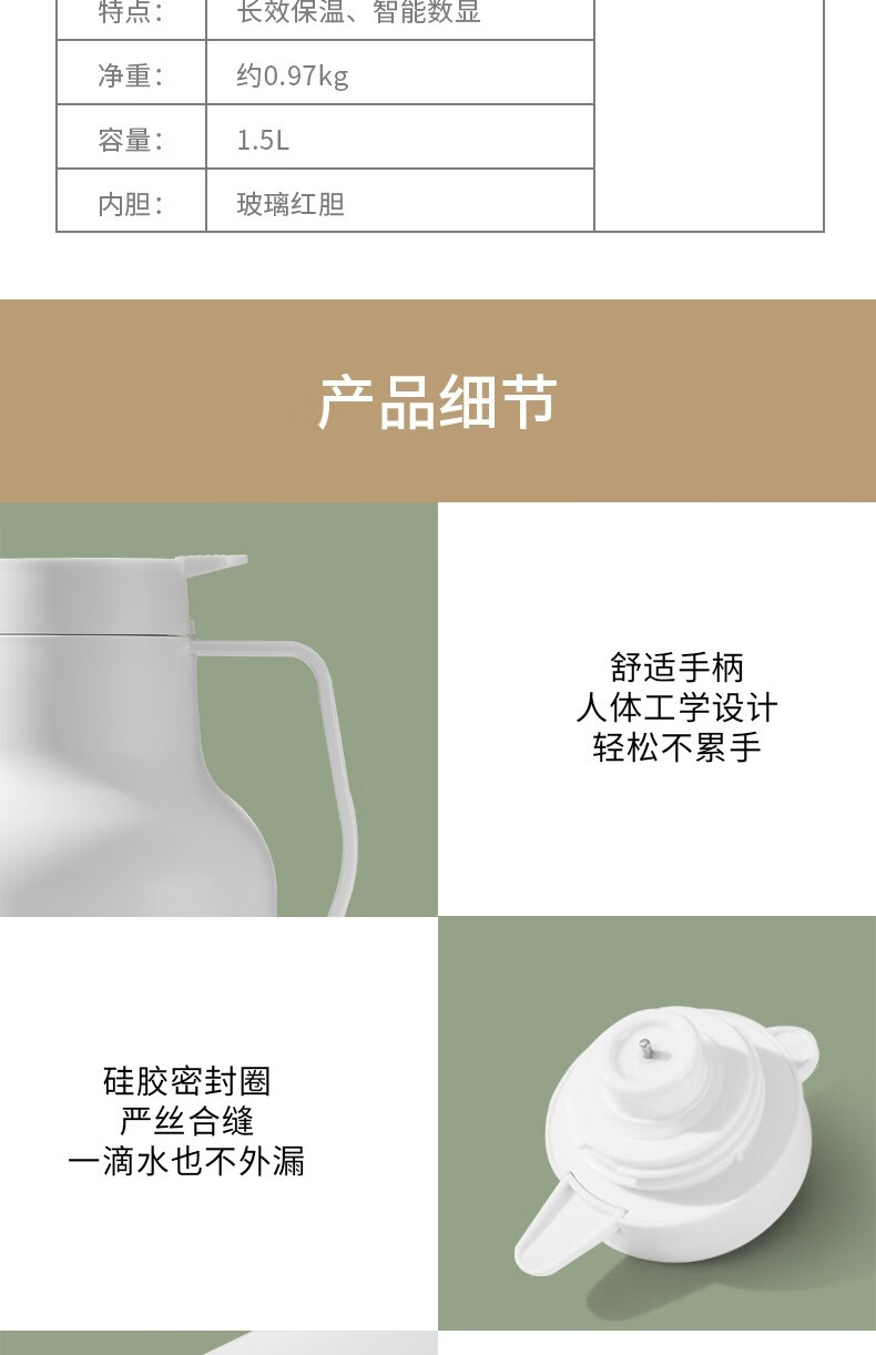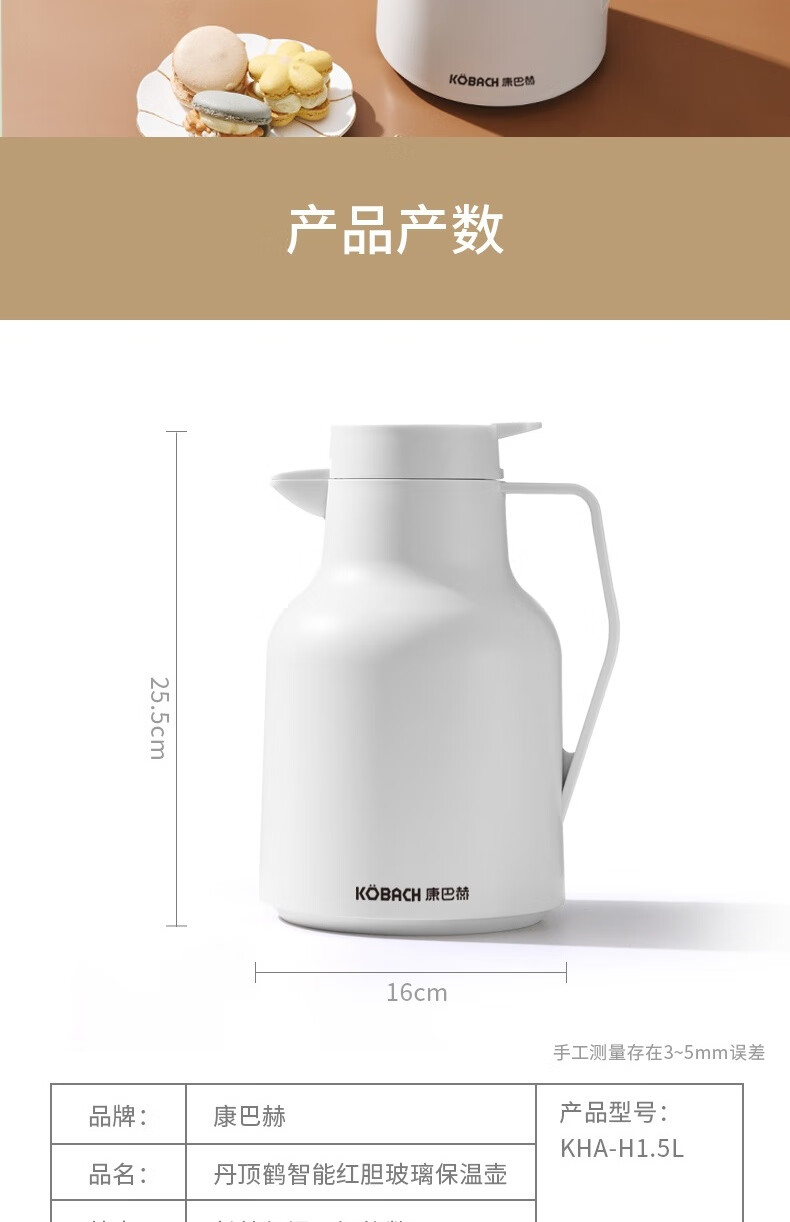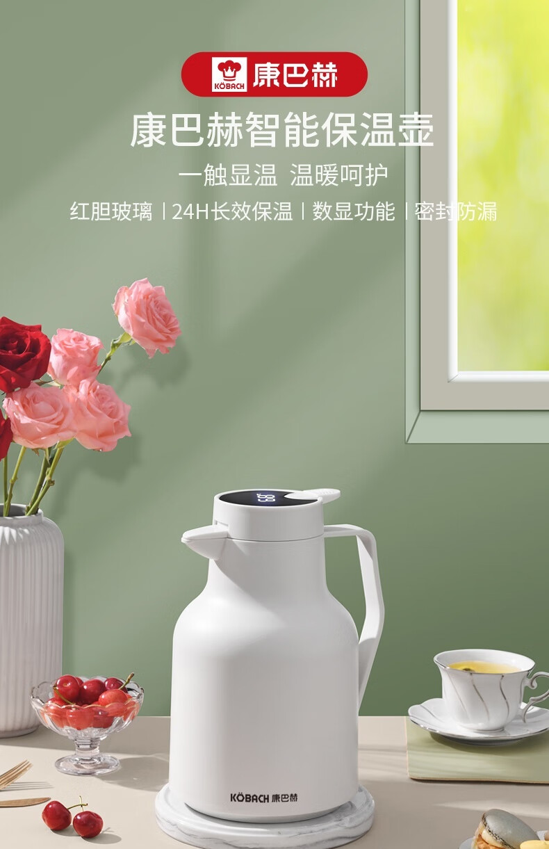 康巴赫(KBH) 丹顶鹤保温壶智能数显红胆长效保温1.5L 白色KHA-H1.5LA