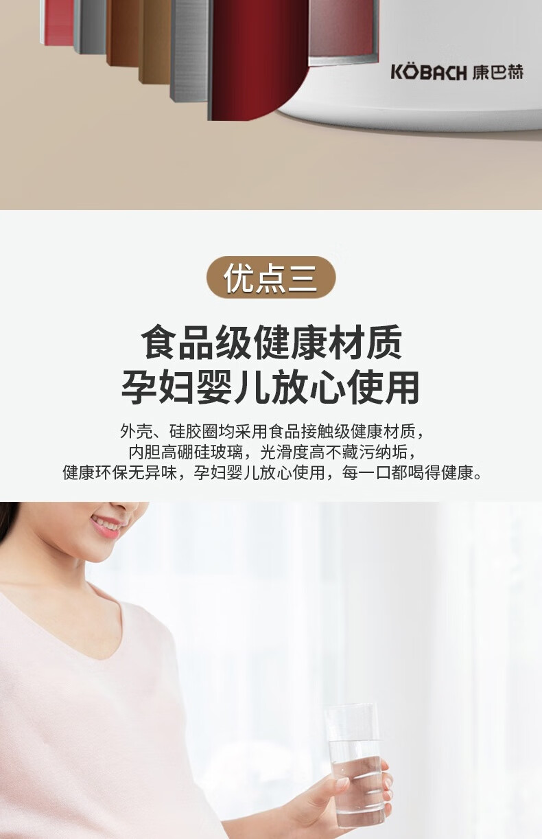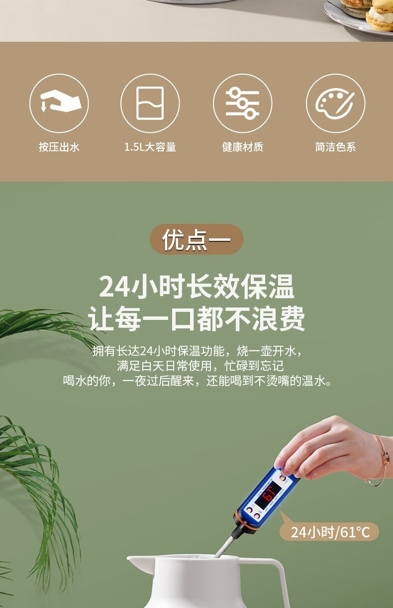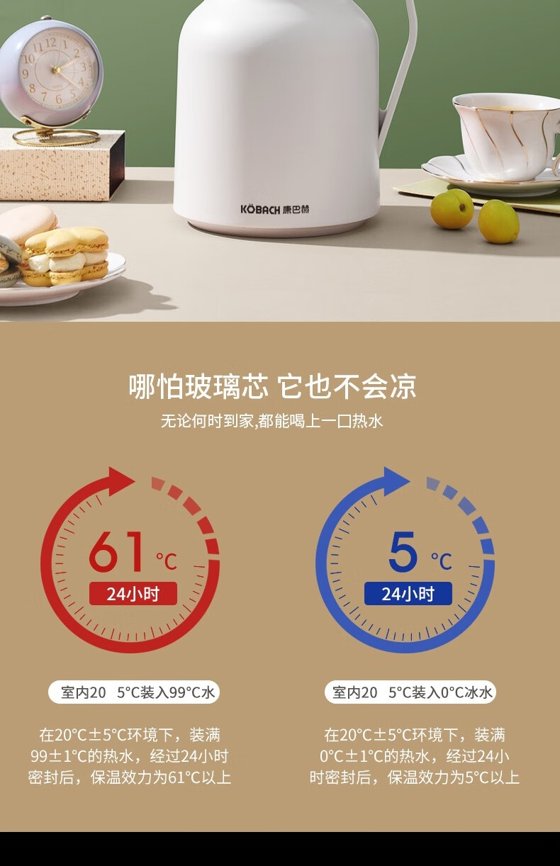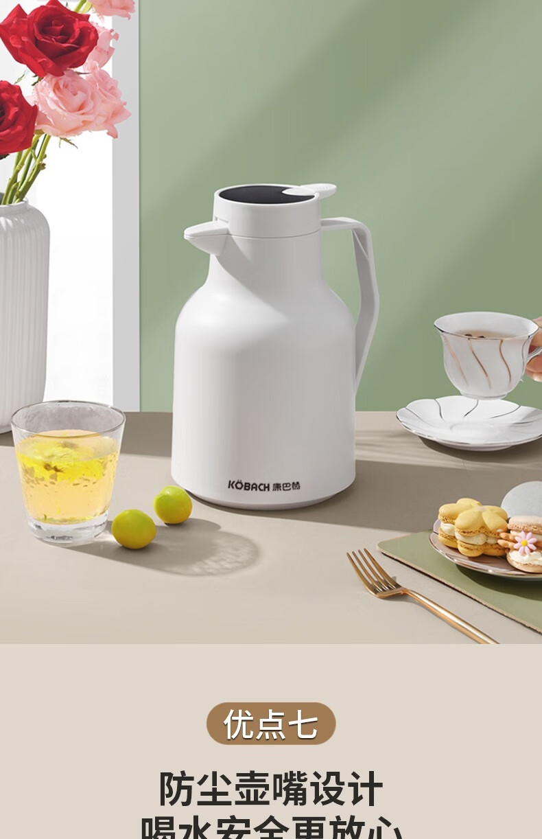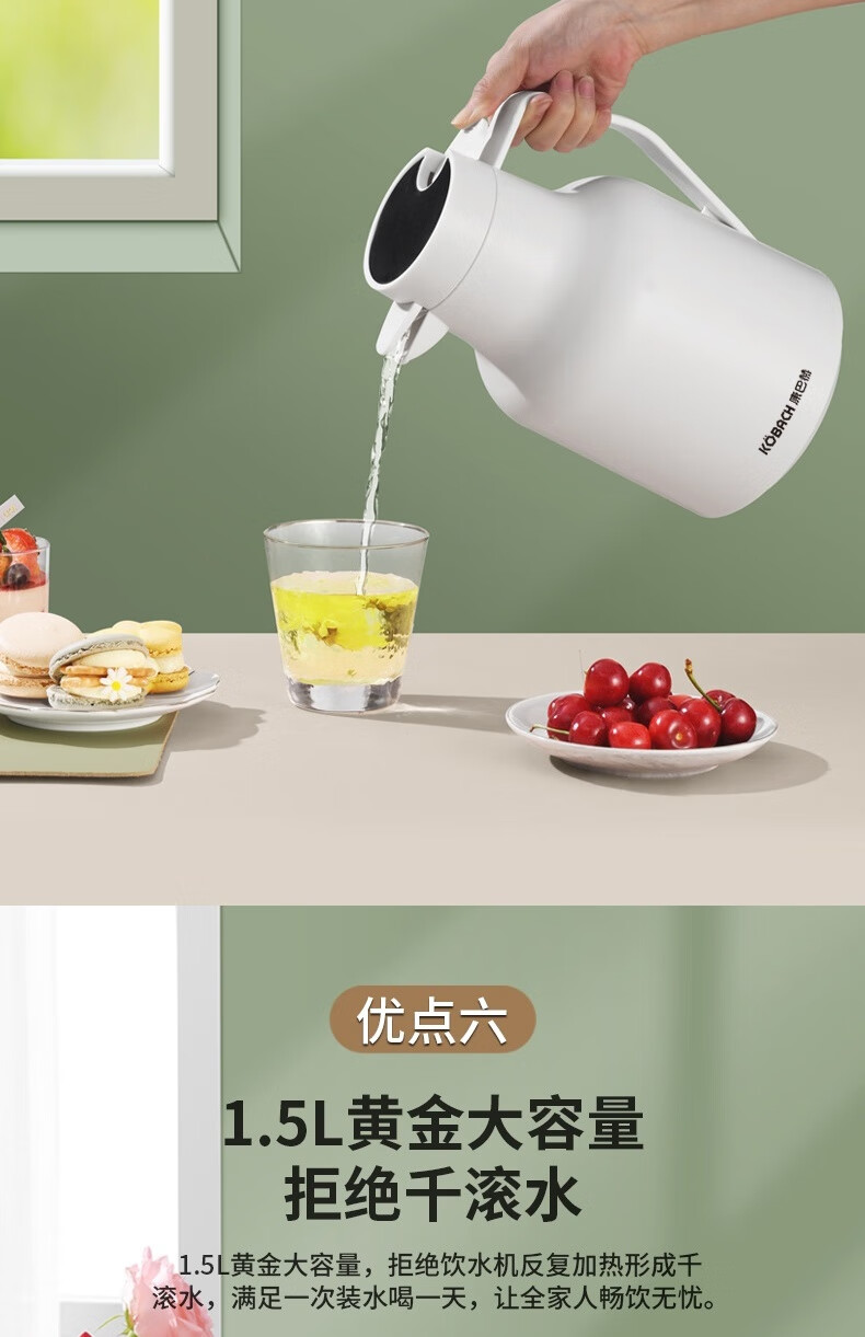 康巴赫(KBH) 丹顶鹤保温壶智能数显红胆长效保温1.5L 白色KHA-H1.5LA