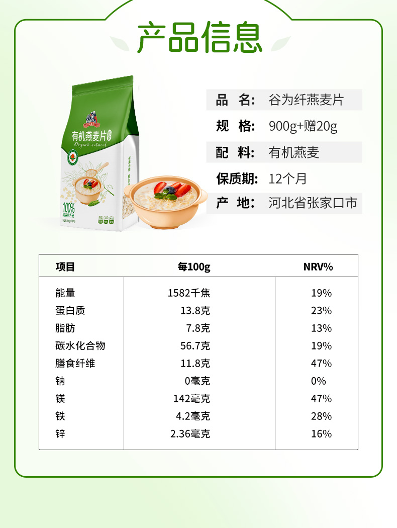 优选丨谷为纤燕有机燕麦片 920g/袋