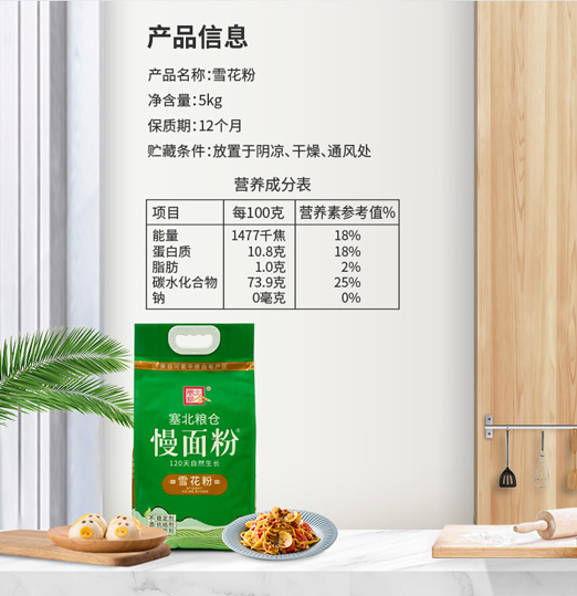 【 塞北粮仓·雪花粉5kg】 家庭大袋高筋小麦面粉包子饺子馒头通用麦芯粉