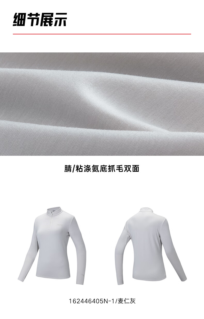 安踏加绒修身长袖 女冬季小高领显瘦户外保暖内搭打底衫162446405N