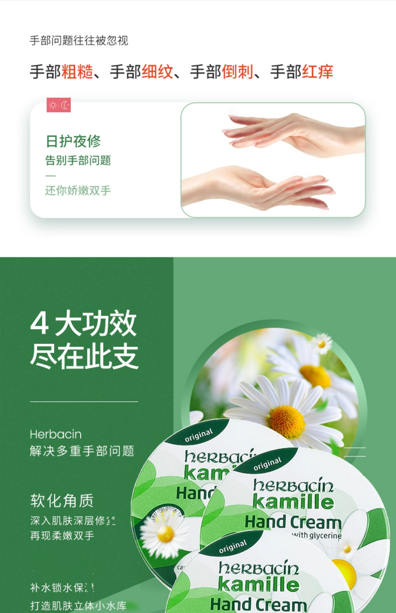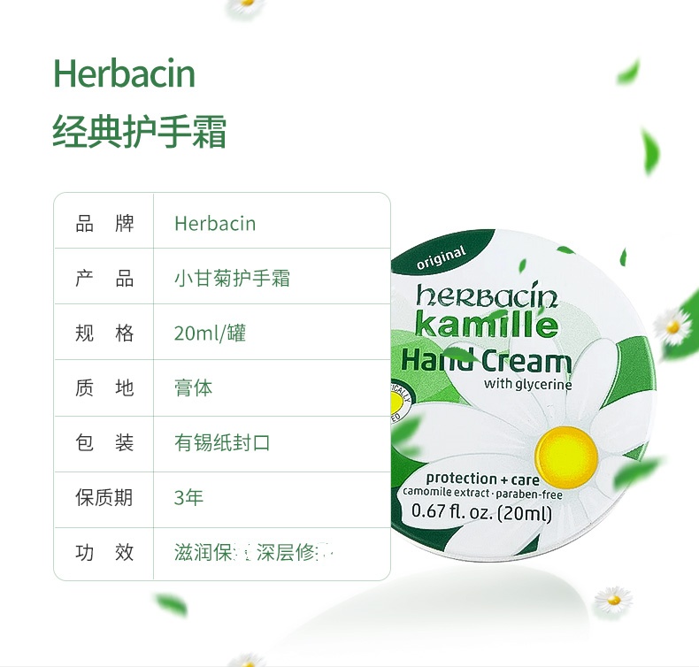 HERBACIN好本清 德国小甘菊经典护手霜圆罐伴手礼 20ml/支