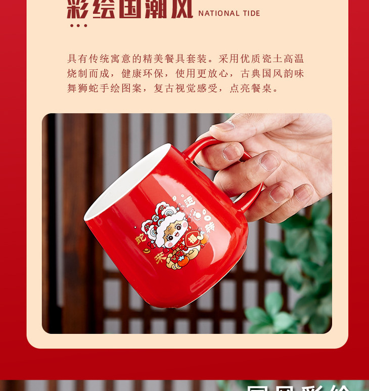 【蛇年限定❗️蛇来运转礼盒套装】国风彩绘,高温烧制,安全健康❗️恒温杯杯子伴手礼套装水杯圣诞礼品陶瓷马克杯礼盒新年随手礼物定制
