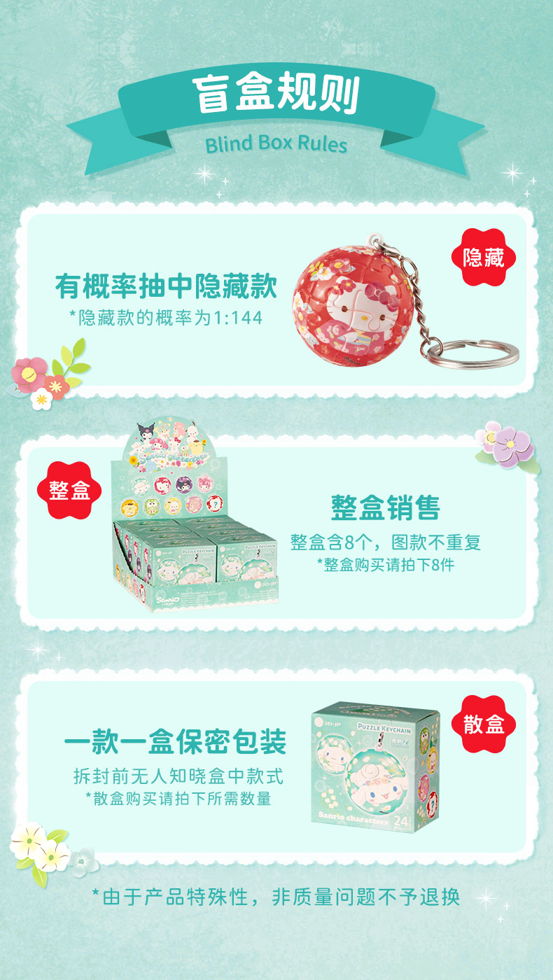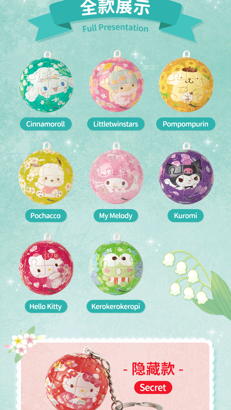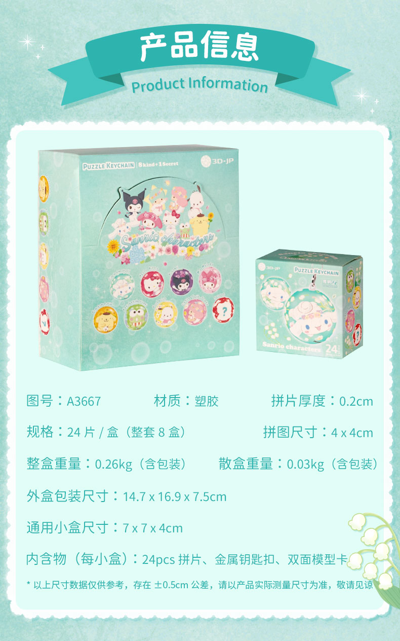 24片盲盒钥匙扣拼图 塑料拼图 A3667 Sanrio Characters 花与万物可爱系列