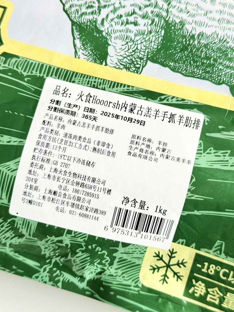 【产品名称】:内蒙古羔羊手抓羊肋排