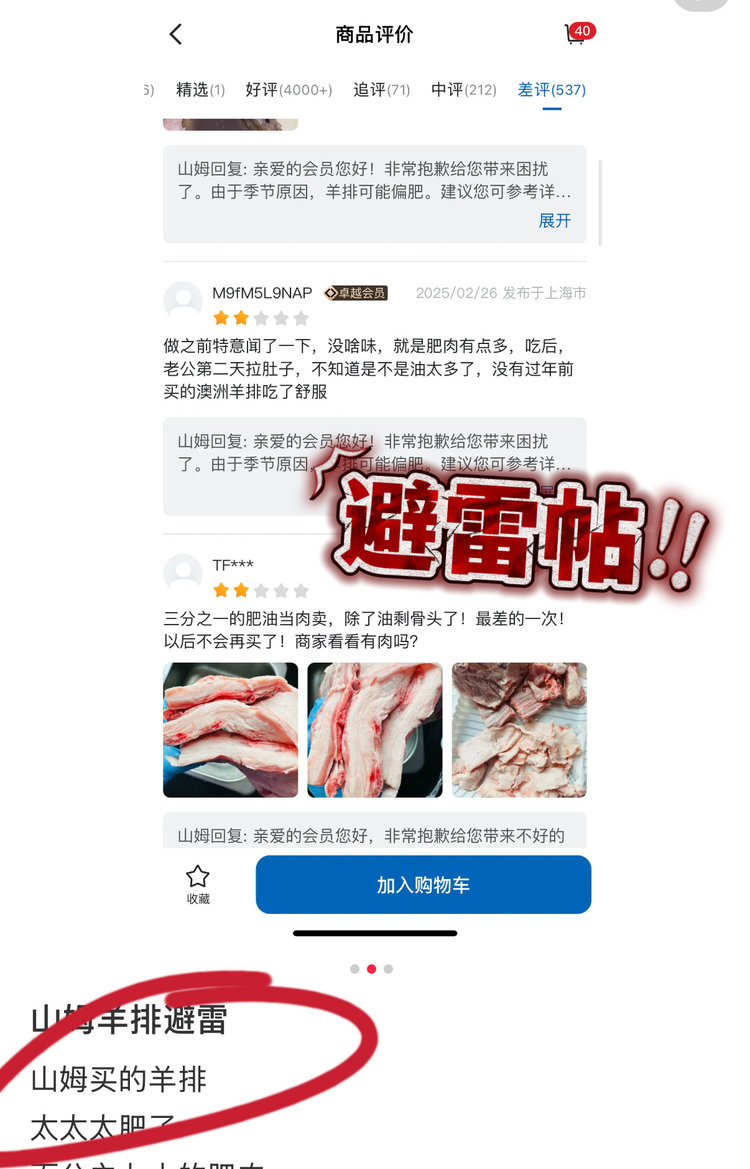 连山姆的那款羊肋排都是被狠狠吐槽😢