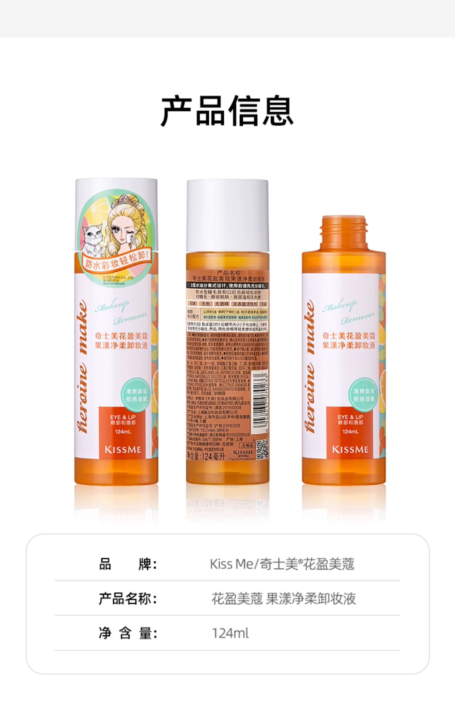 KISS ME 奇士美 花盈美蔻果漾净柔卸妆液 124ml【保质期:2026年7月21日】
