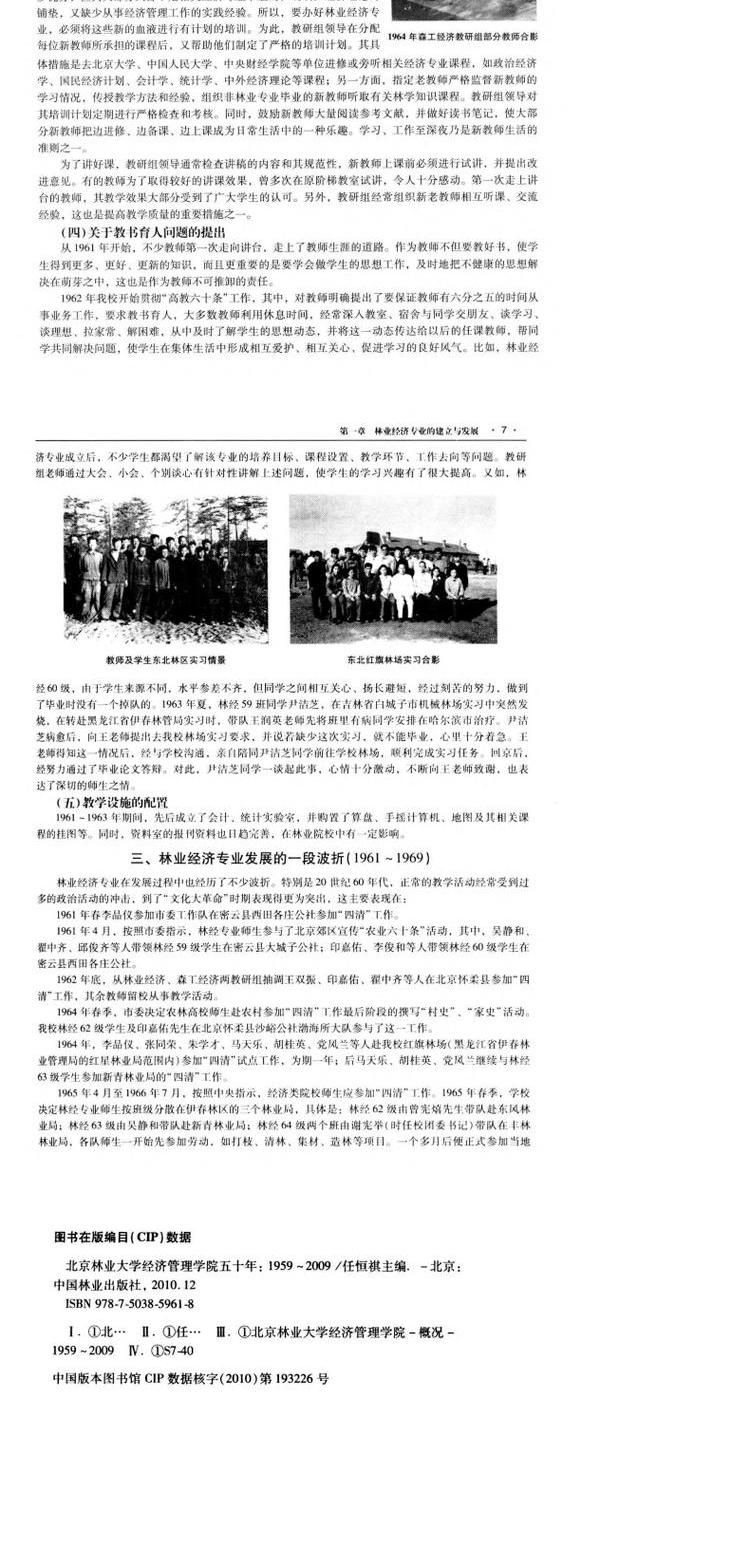 北京林业大学经济管理学院五十年.1959~2009 科技