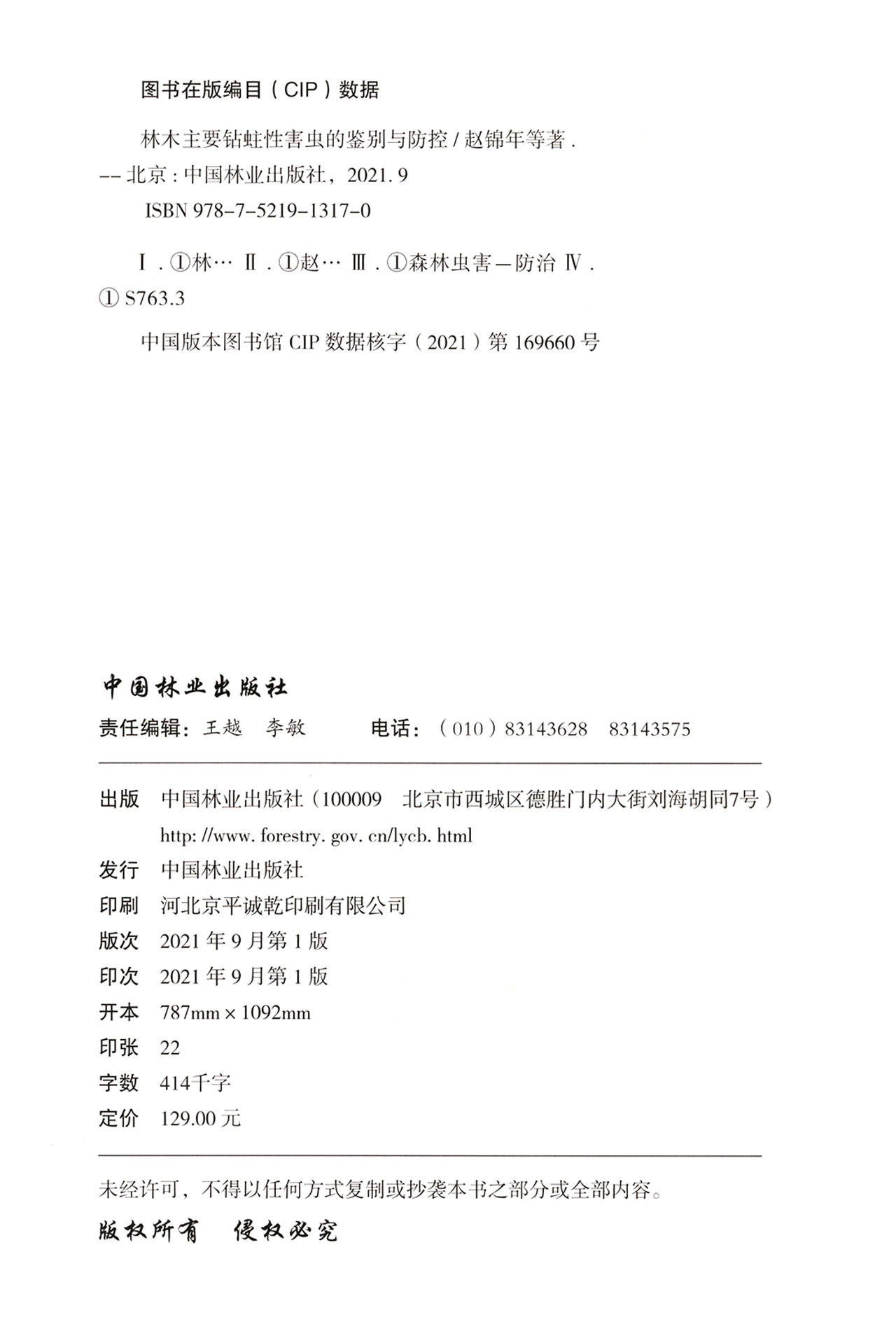 林木钻蛀性害虫是日常生产、生活所习见的一类专门蛀害林木及其制品的害虫。此类害虫种类多,分布广,传播快,隐蔽性强,危害严重且持久,鉴别与防控难度大。本书以作者40多年专业研究工作为基础,同时借鉴、参考国内有关文献研究资料,经全面、系统整理编纂而成。书中择要列举80种林木主要钻蛀性害虫的寄主种类、形态鉴别、生活习性、发生发展规律及其制约天敌,并提供较为系统的防控技术和措施。全书内容翔实,记叙生动,图文并茂,可作为教学、科研、生产、管理等部门人员的参考用书。