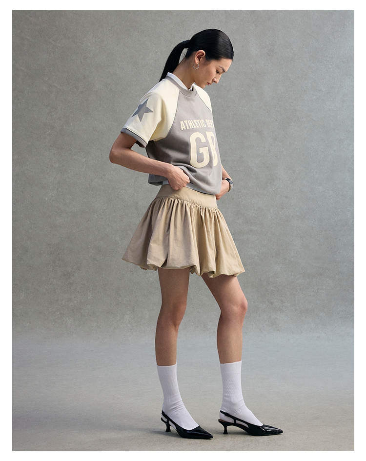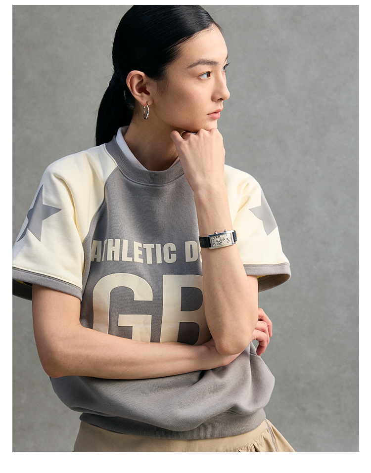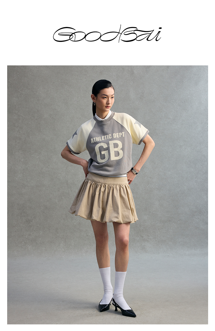 GOODBAI GB athletic logo印花撞色插肩袖圆领收腰短袖T恤