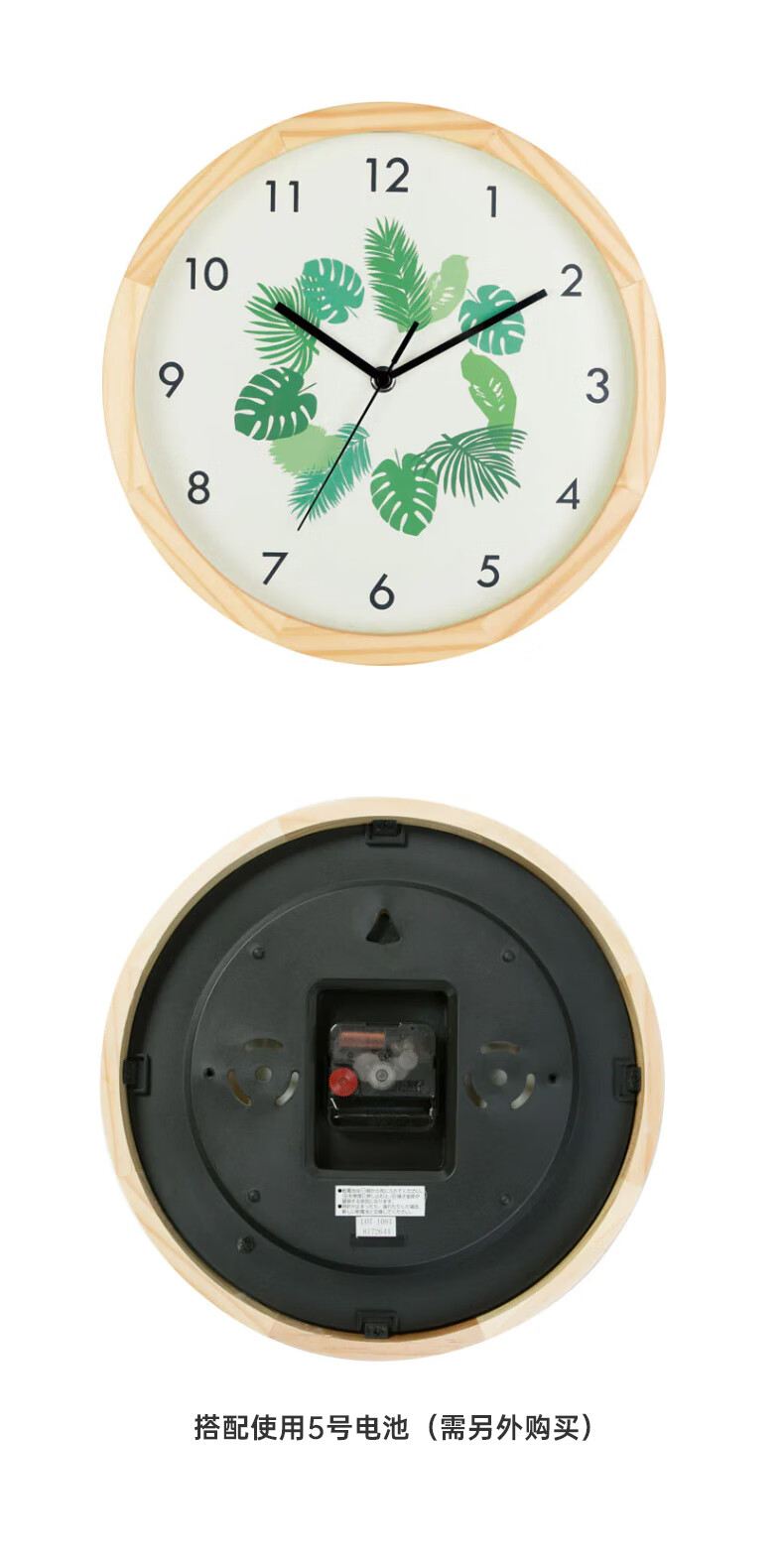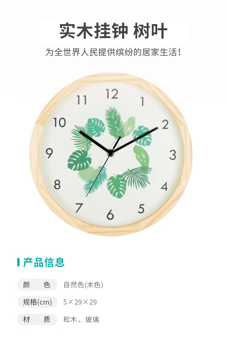 挂墙卧室时钟挂表 松木 实木挂钟 树叶 30SW-NA