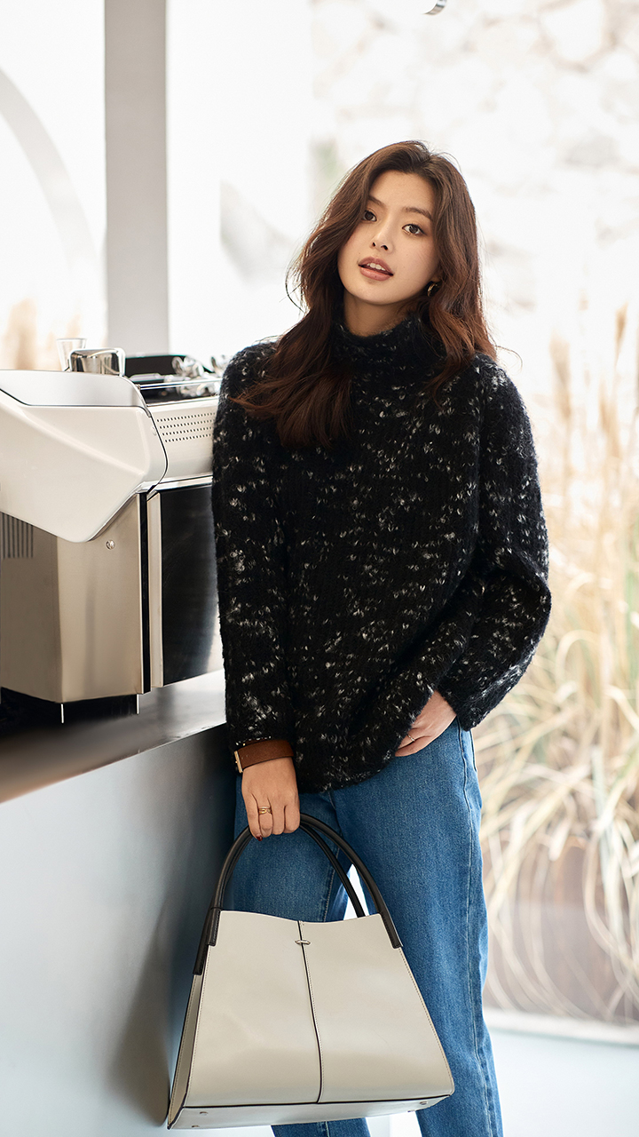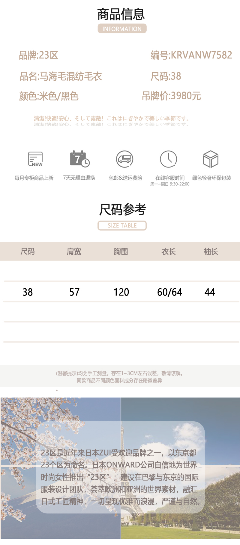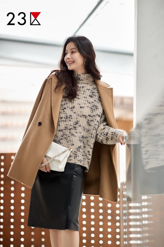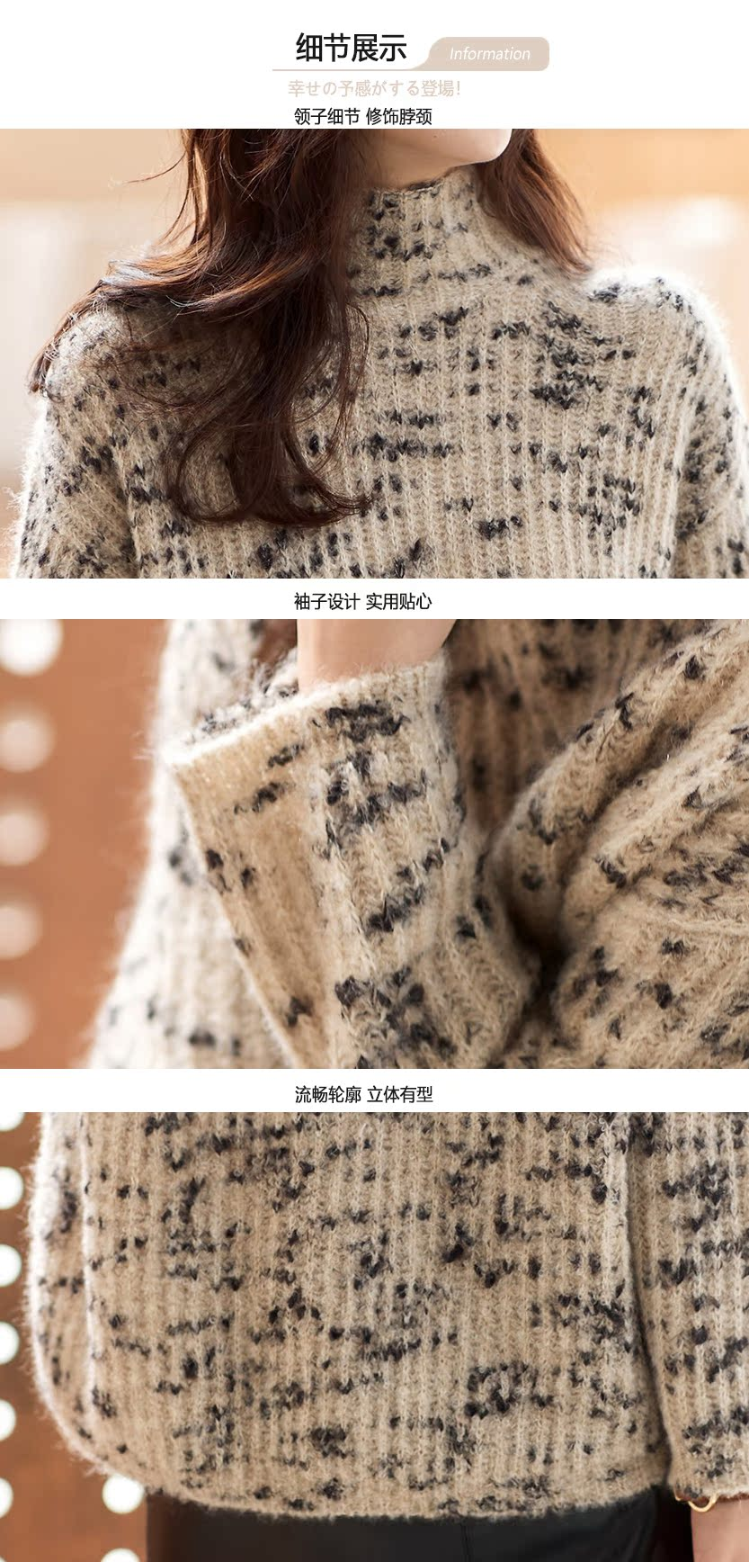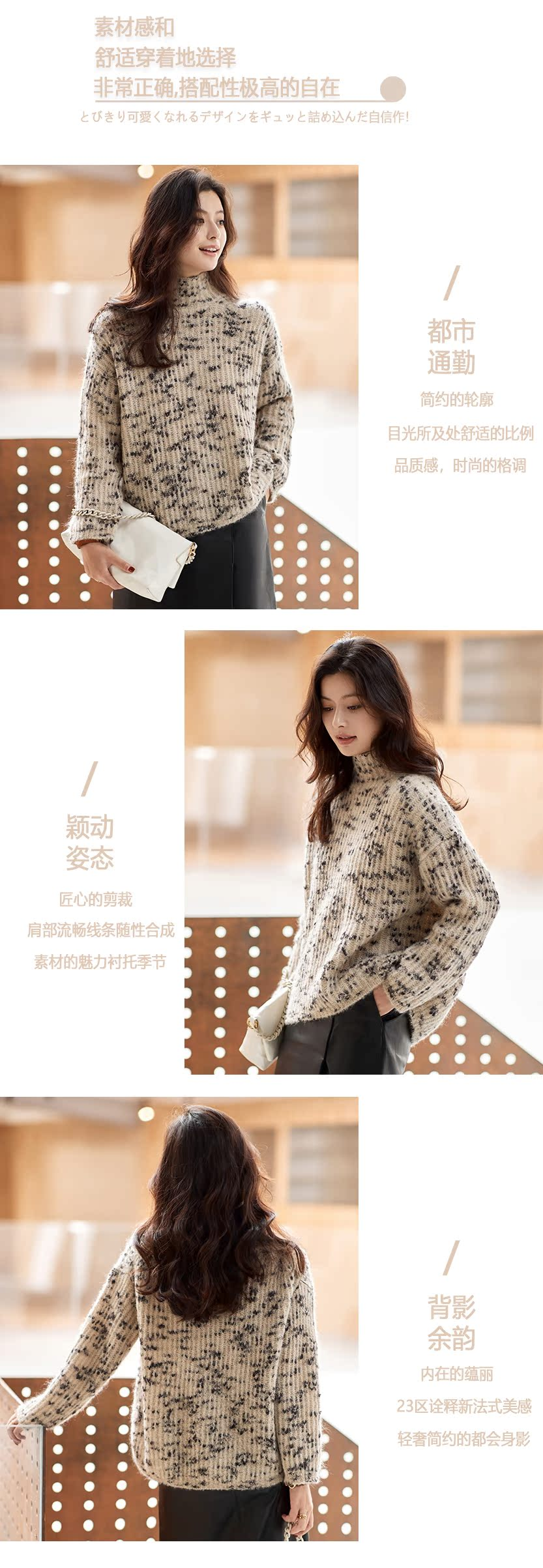 23区日系秋季通勤宽松马海毛羊毛混纺高领毛衣针织毛衫商场同款