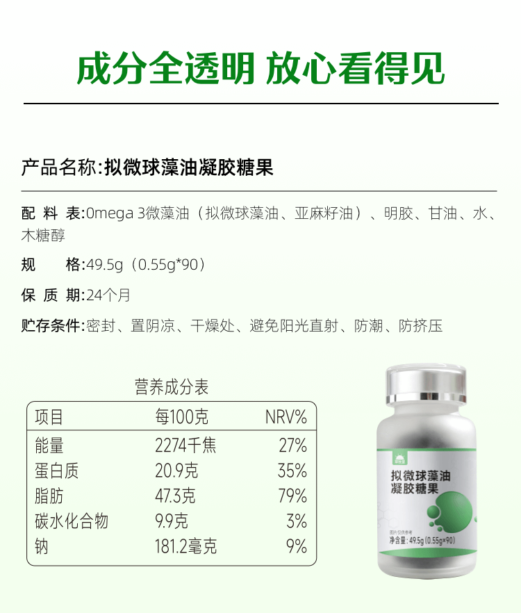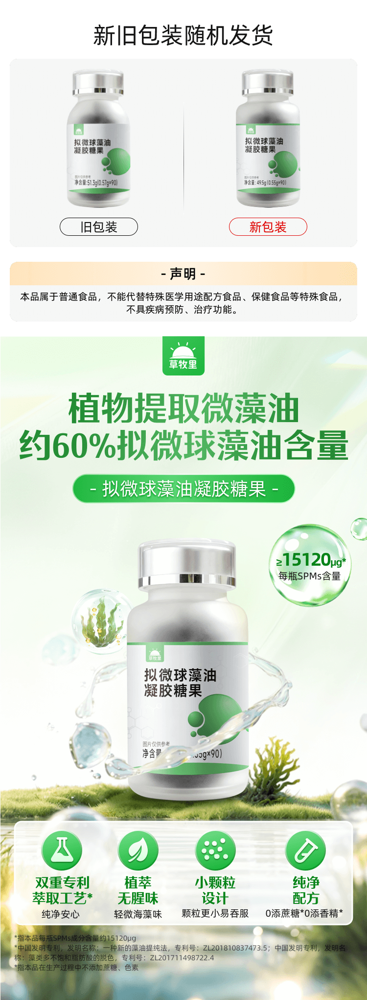 【 新老包装随机发货】草牧里 拟微球藻油凝胶糖果 90粒/瓶 精纯提炼严保品质