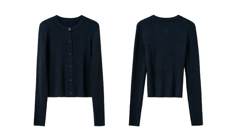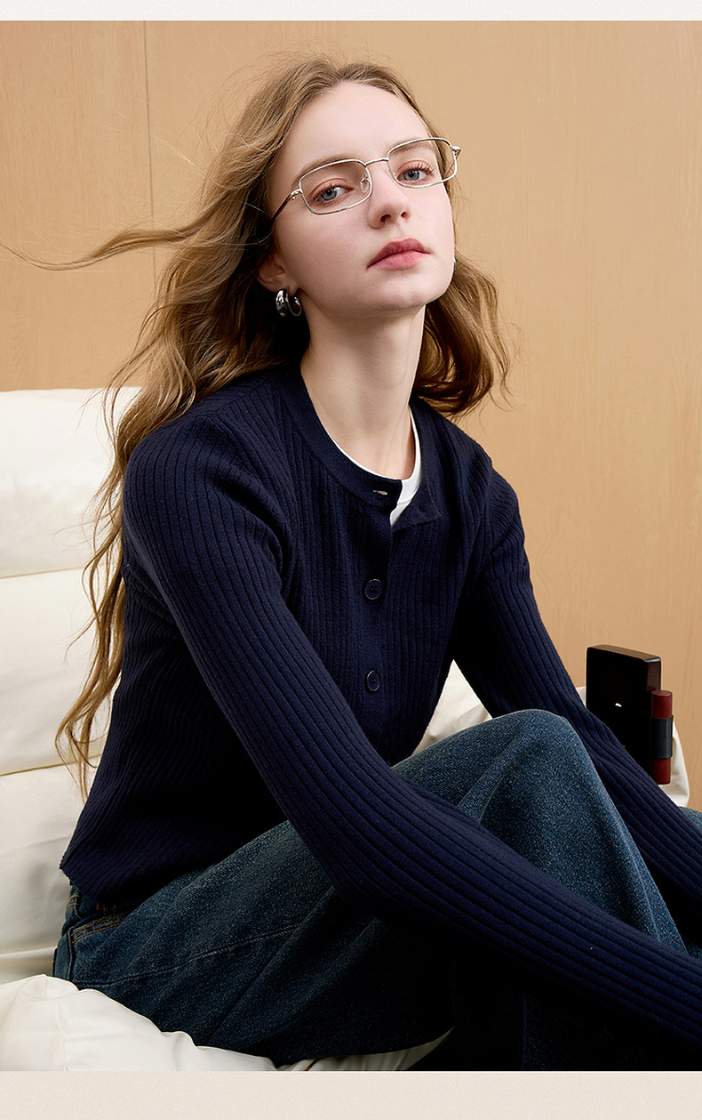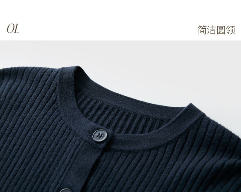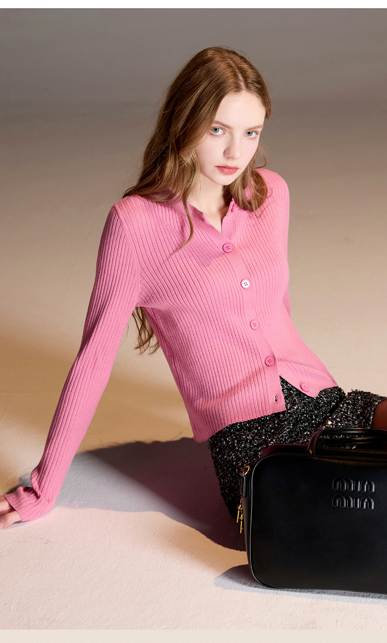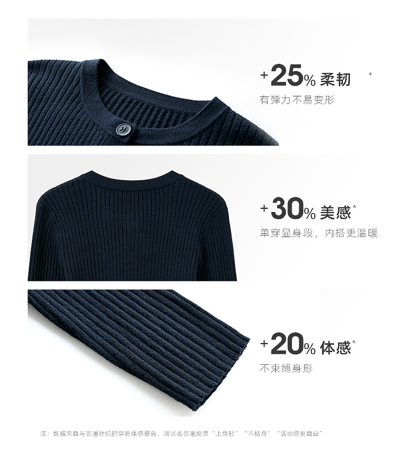 三彩2025冬季新款修身短款圆领针织衫长袖开衫外搭显瘦简约M
