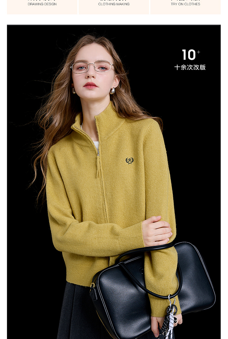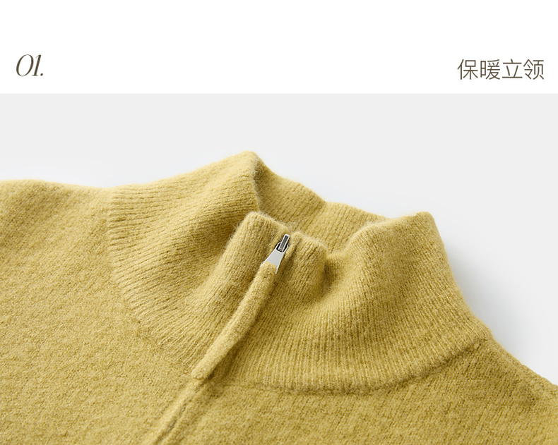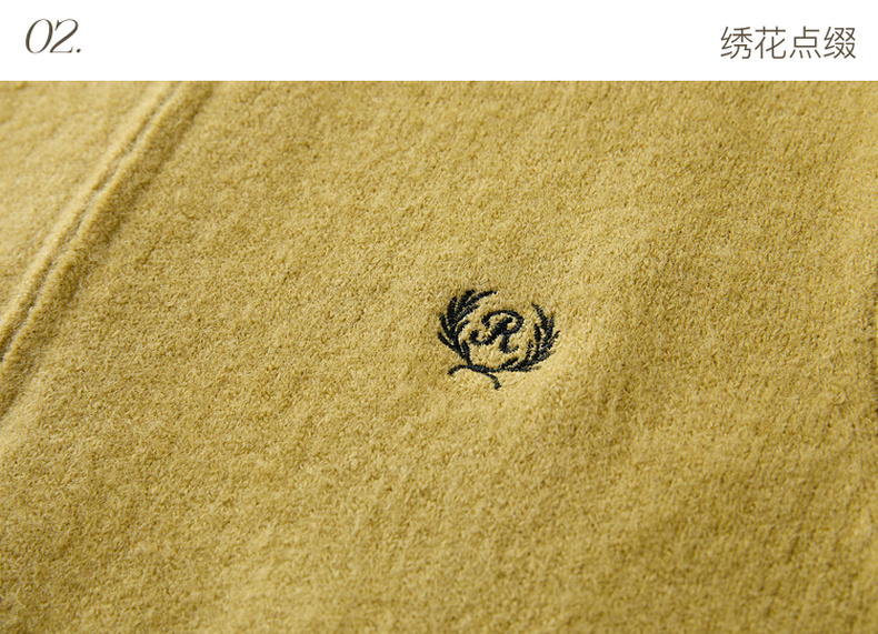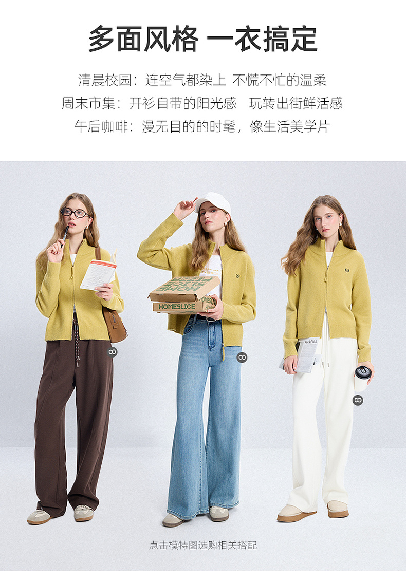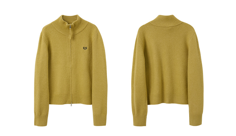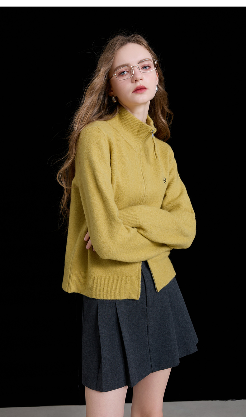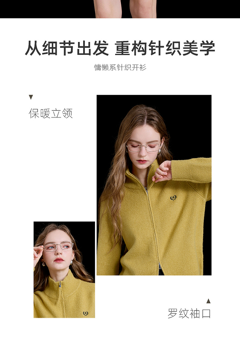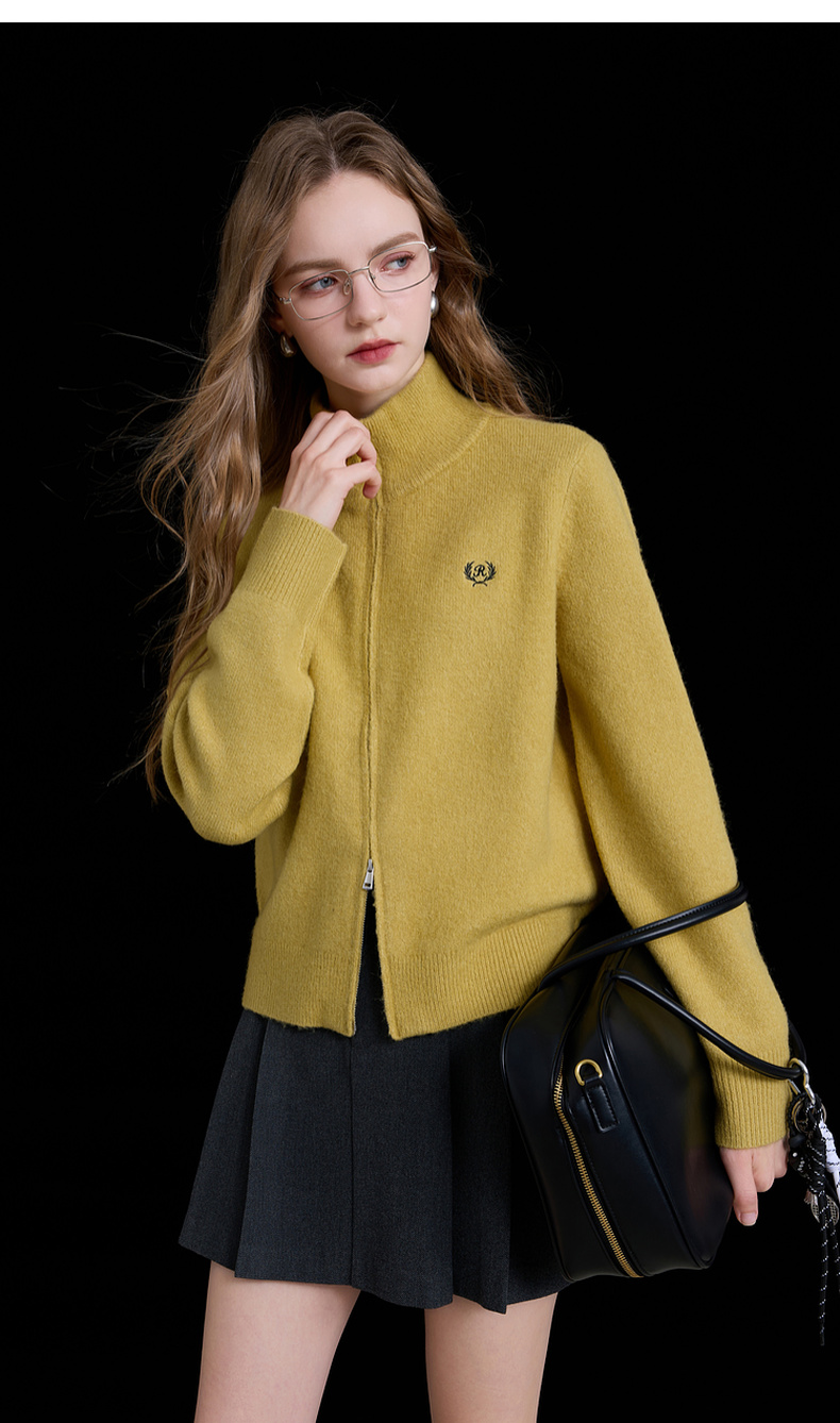 三彩2025冬季新款绣花立领针织衫宽松长袖拉链开衫简约毛衫M
