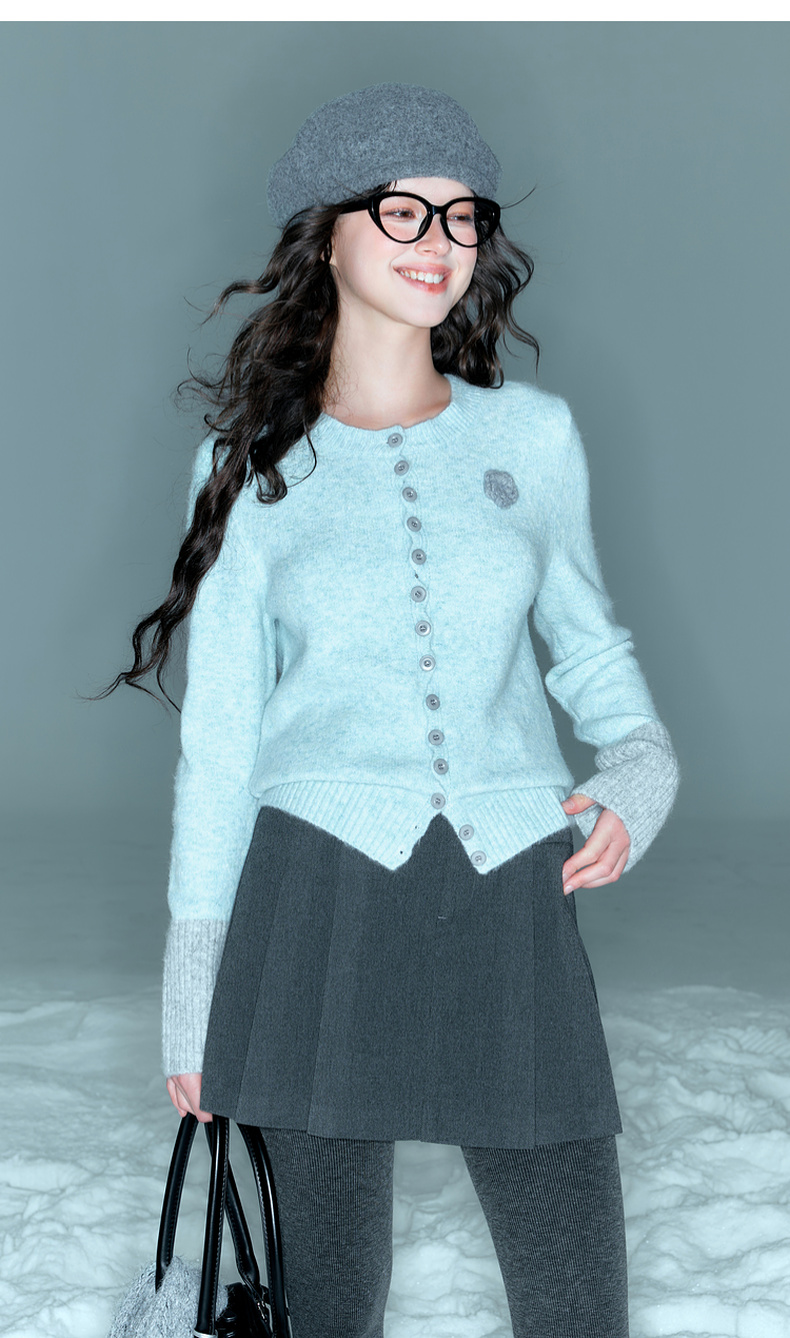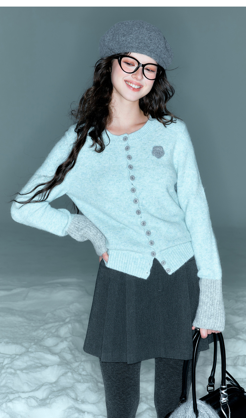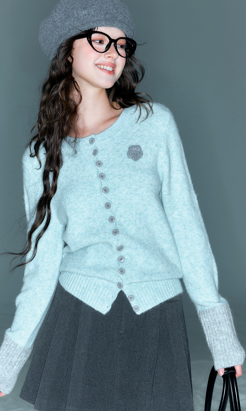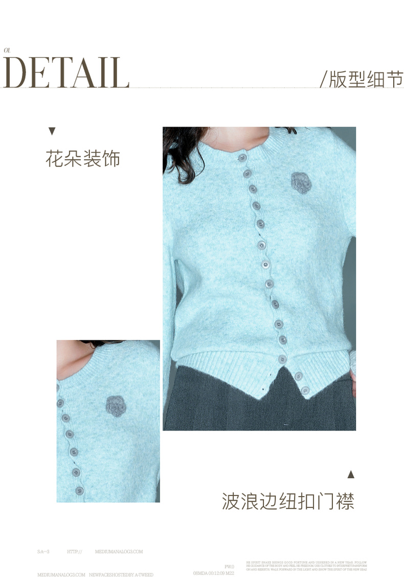 【奶油针织】三彩独醒2025冬季新款圆领花朵开衫针织衫长袖毛衫休闲简约F