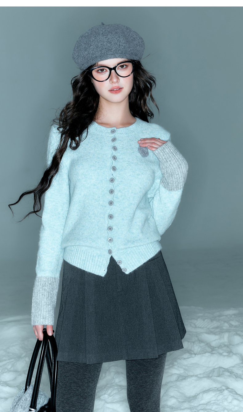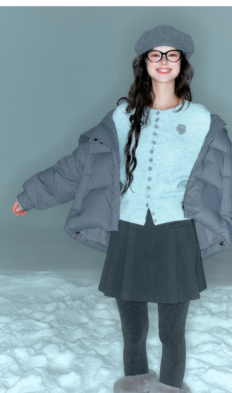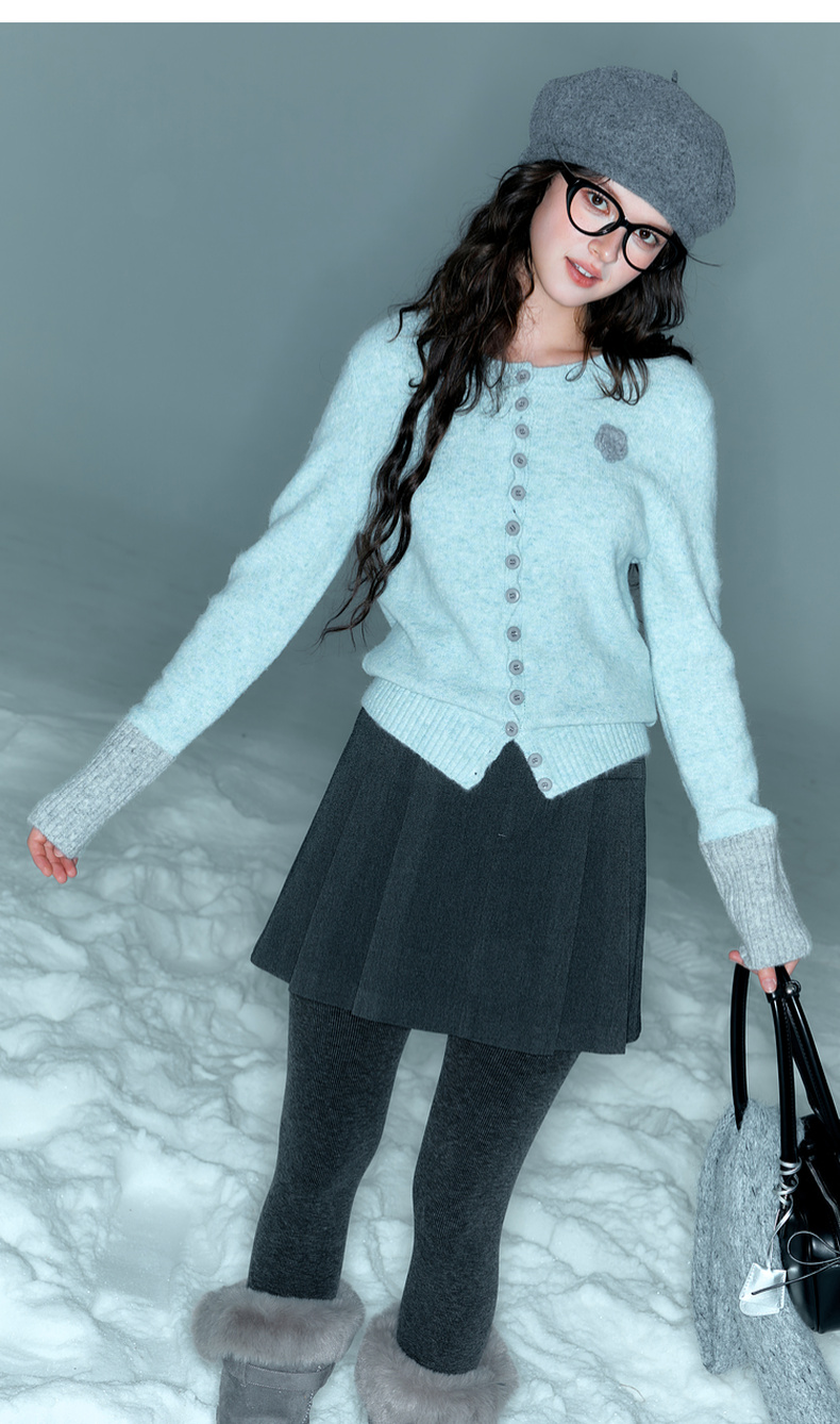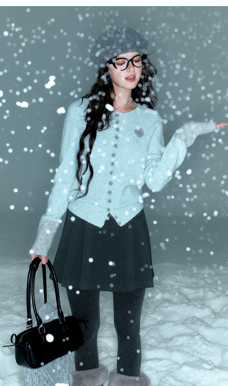【奶油针织】三彩独醒2025冬季新款圆领花朵开衫针织衫长袖毛衫休闲简约F