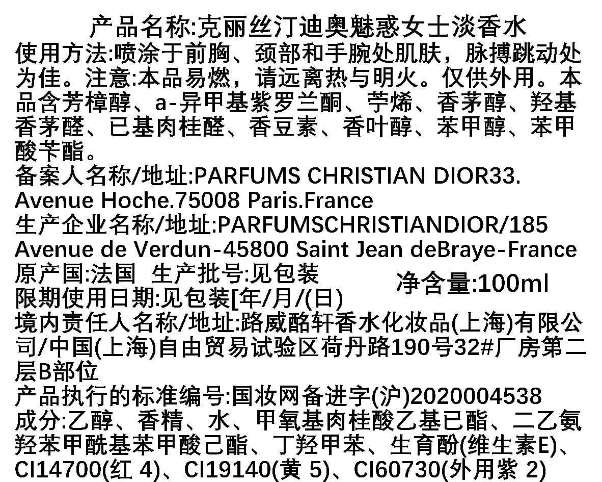 瑕疵香水-Dior迪奥 黄色魅惑女士香水