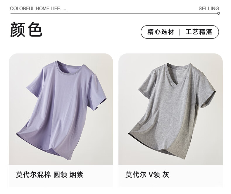 圆领透气纯色上衣T恤宽松 女士短袖 莫代尔