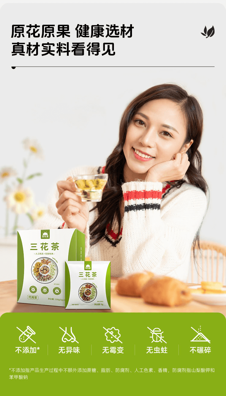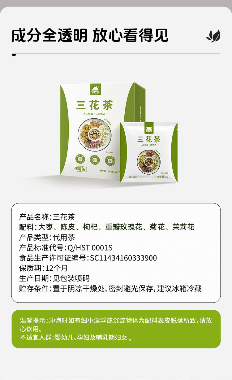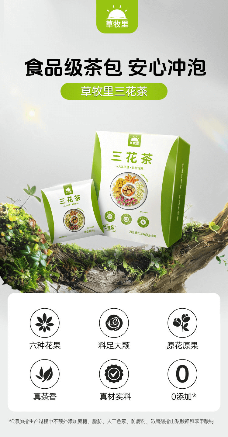 【4盒超值装】草牧里 疏肝三花茶2.0(口味升级)5g*30袋/盒 原花原果健康选材