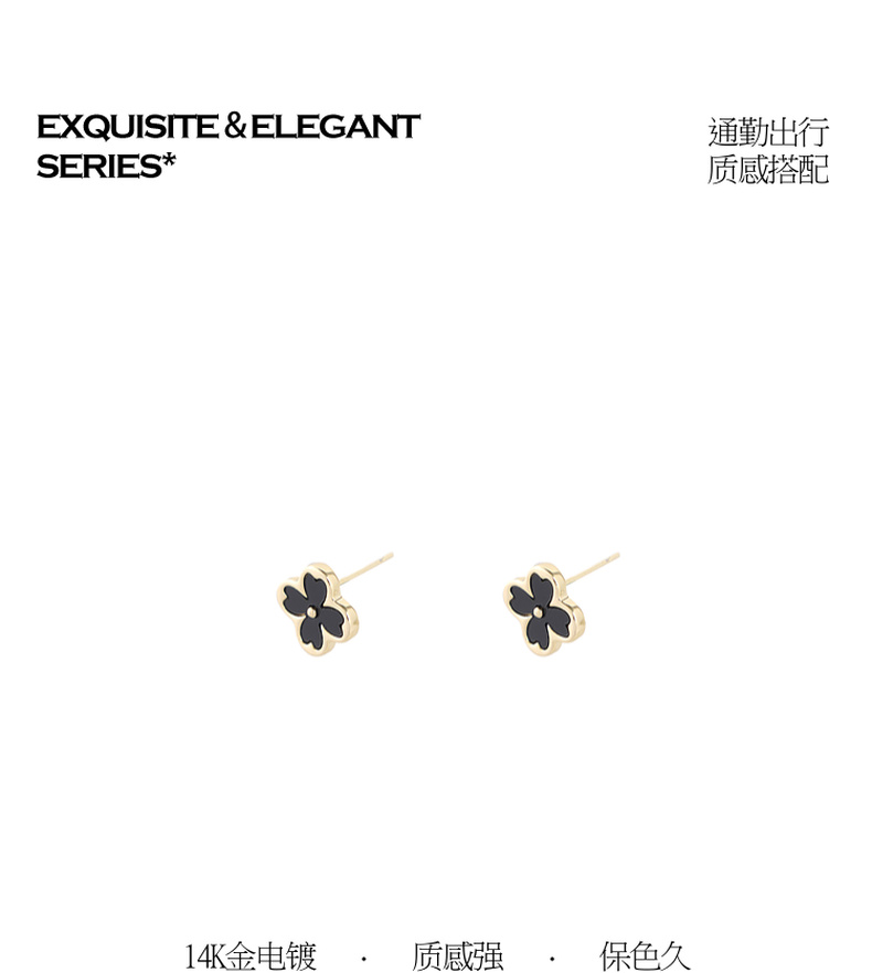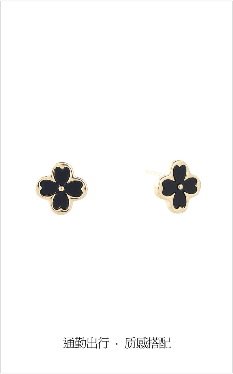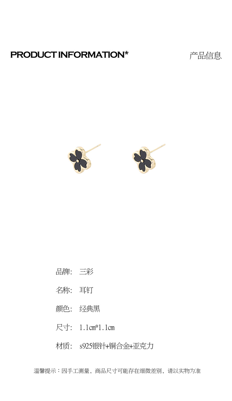 三彩2026新款黑金四叶花耳钉S925银针复古甜酷小众时尚约会通勤女