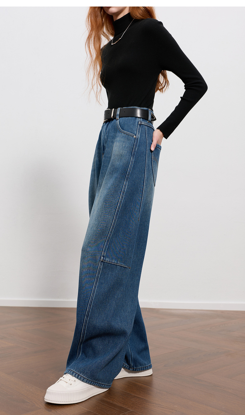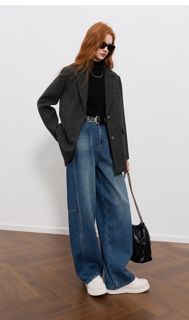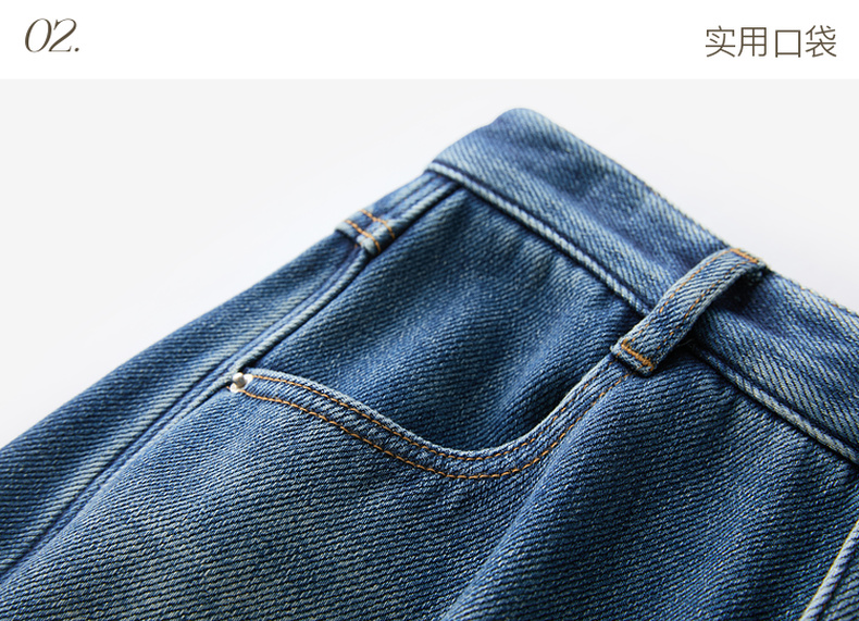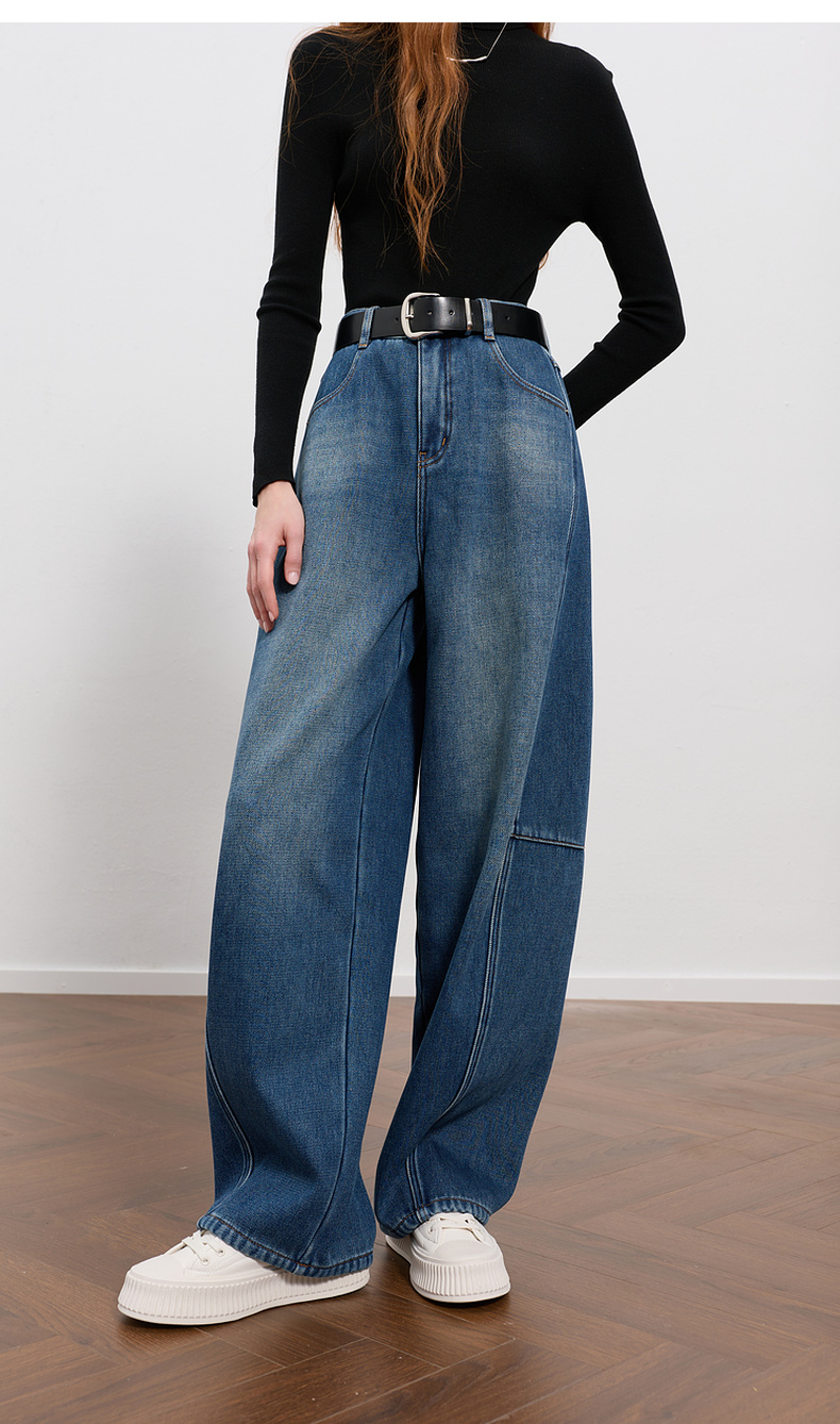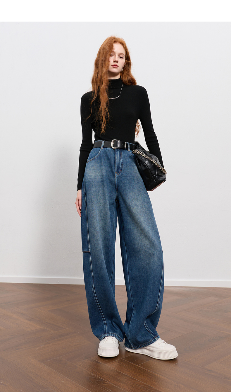 三彩2026春季新款弯刀牛仔裤休闲宽松长裤简约M