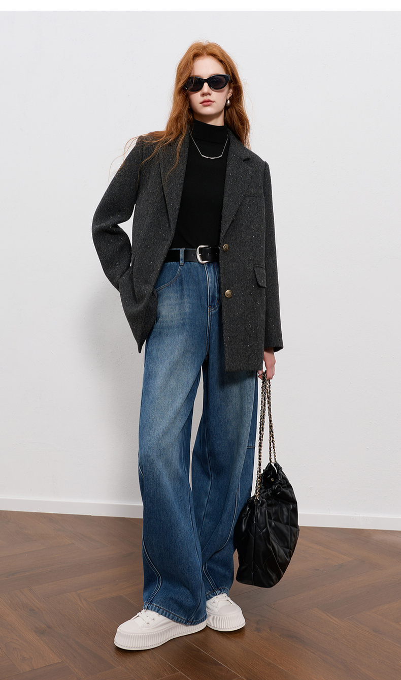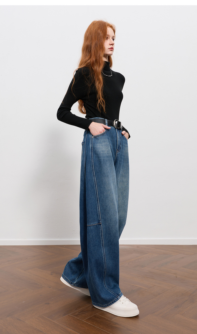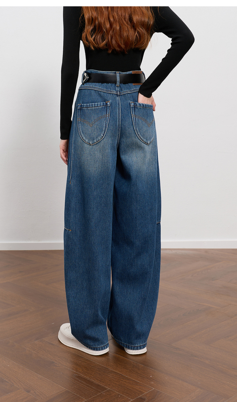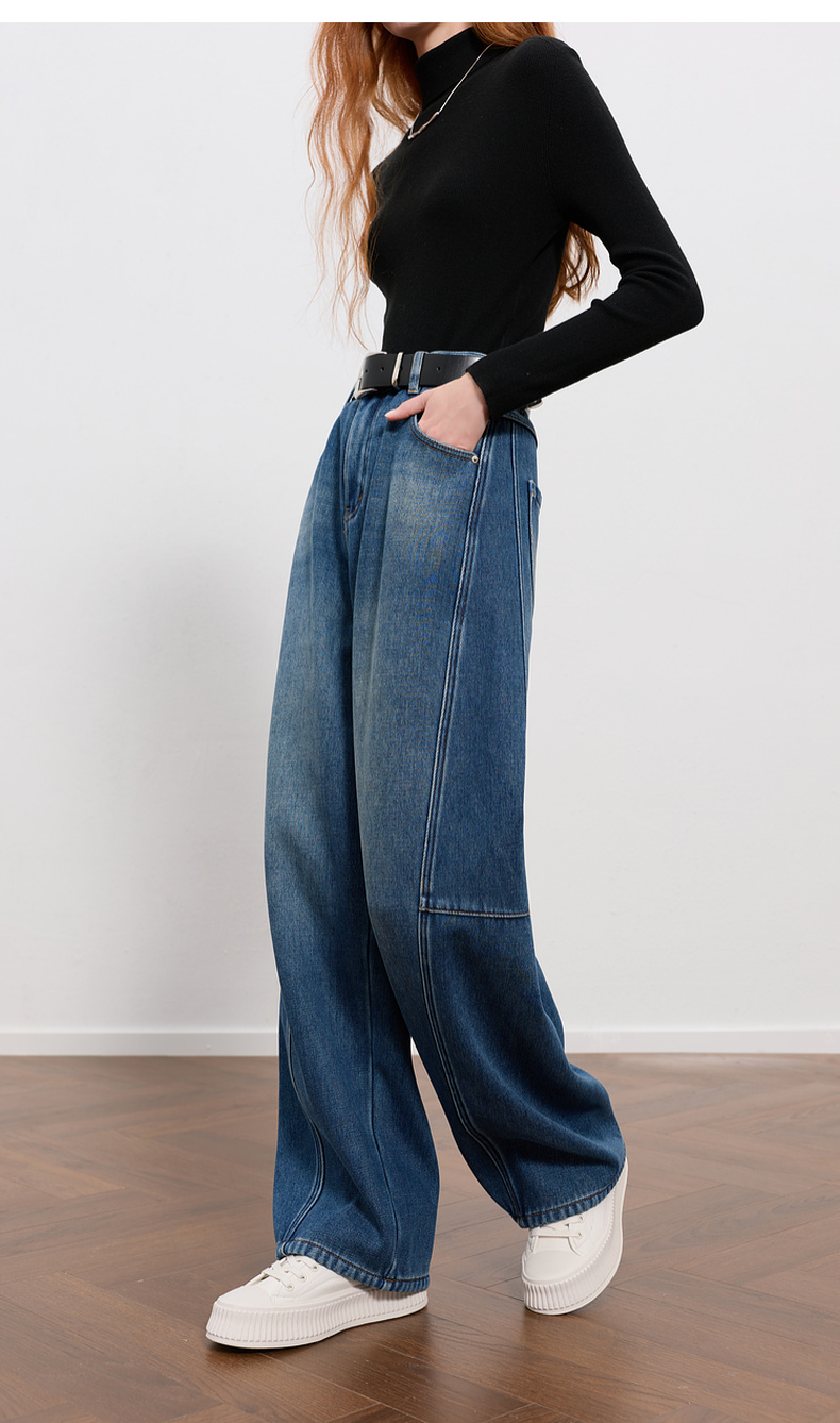 三彩2026春季新款弯刀牛仔裤休闲宽松长裤简约M