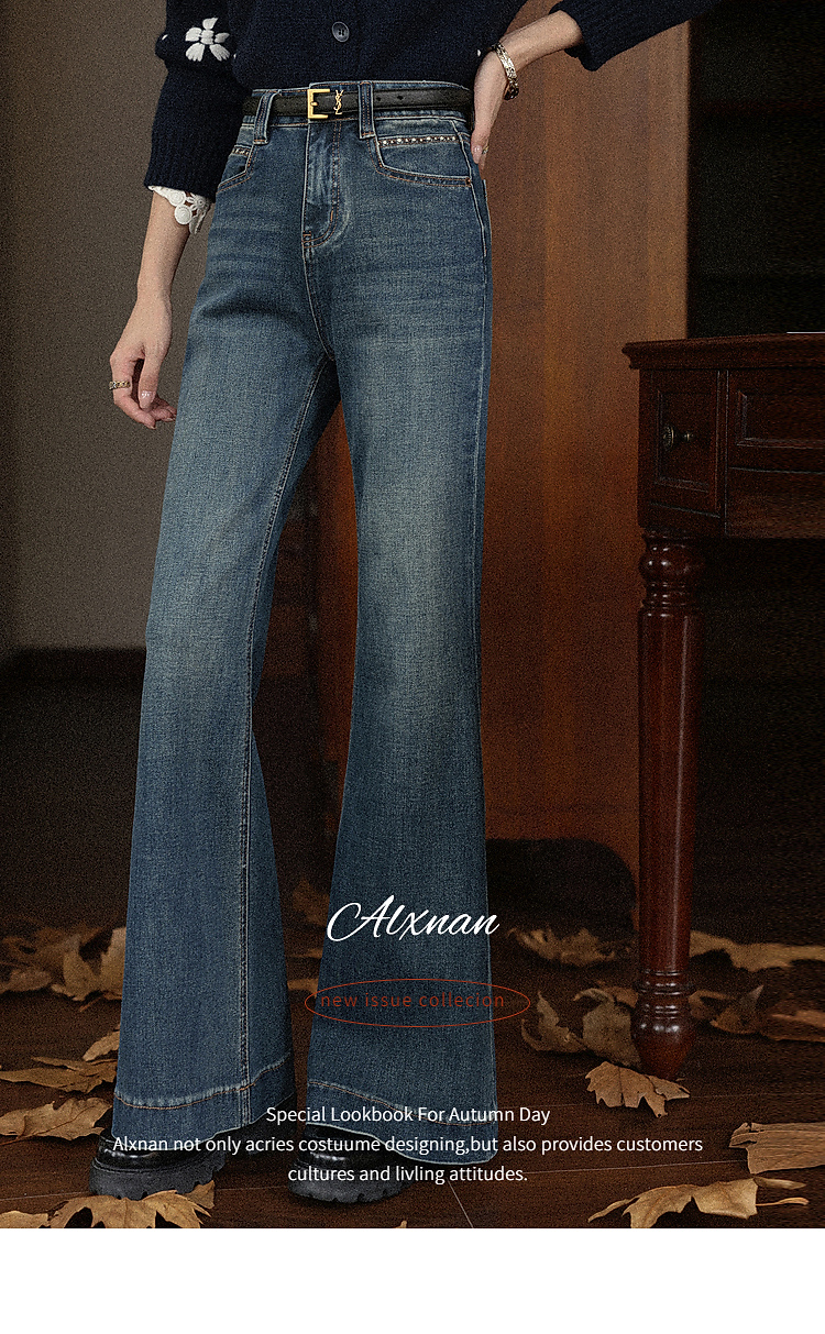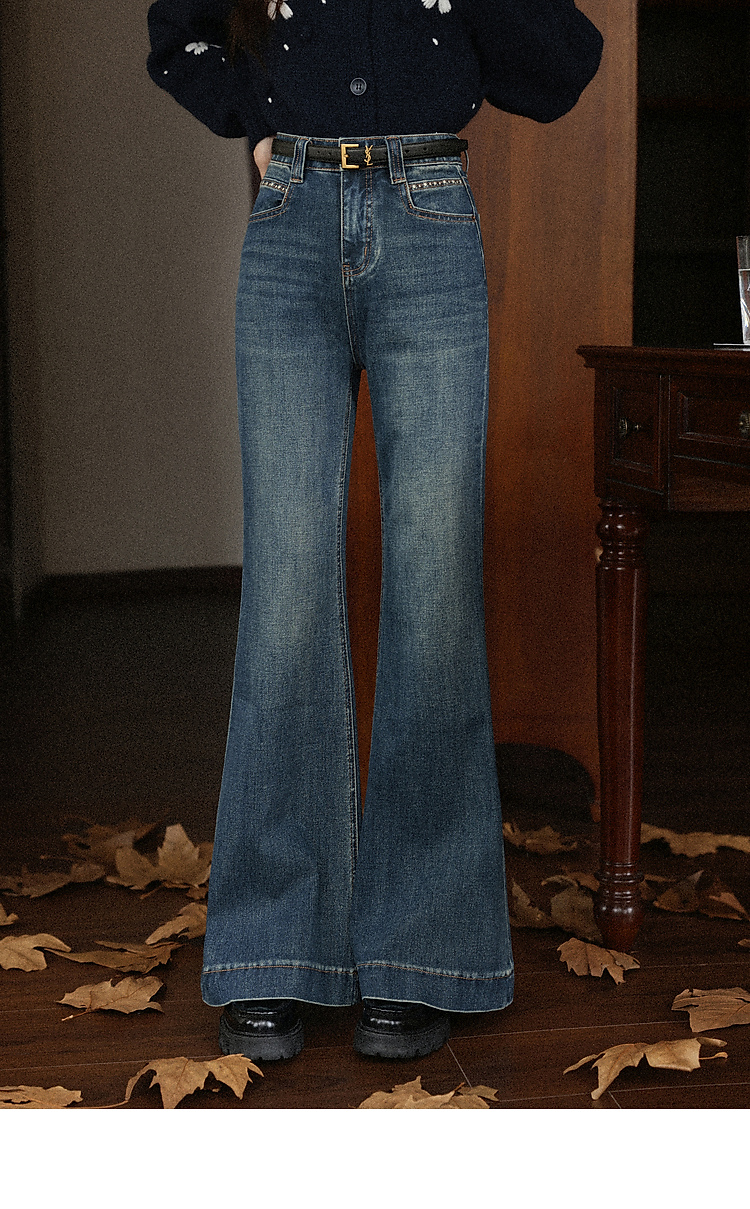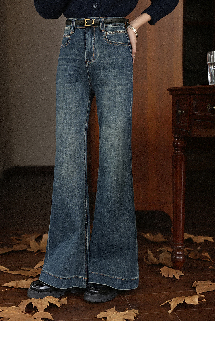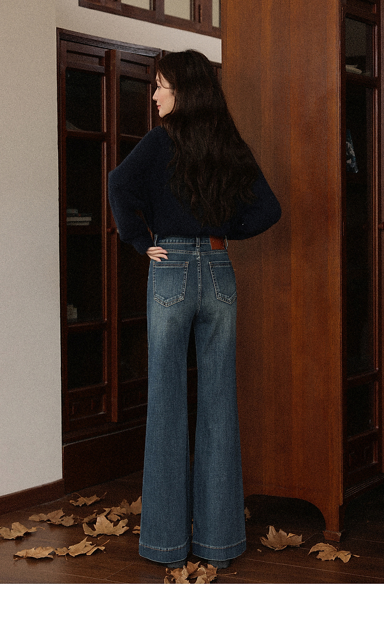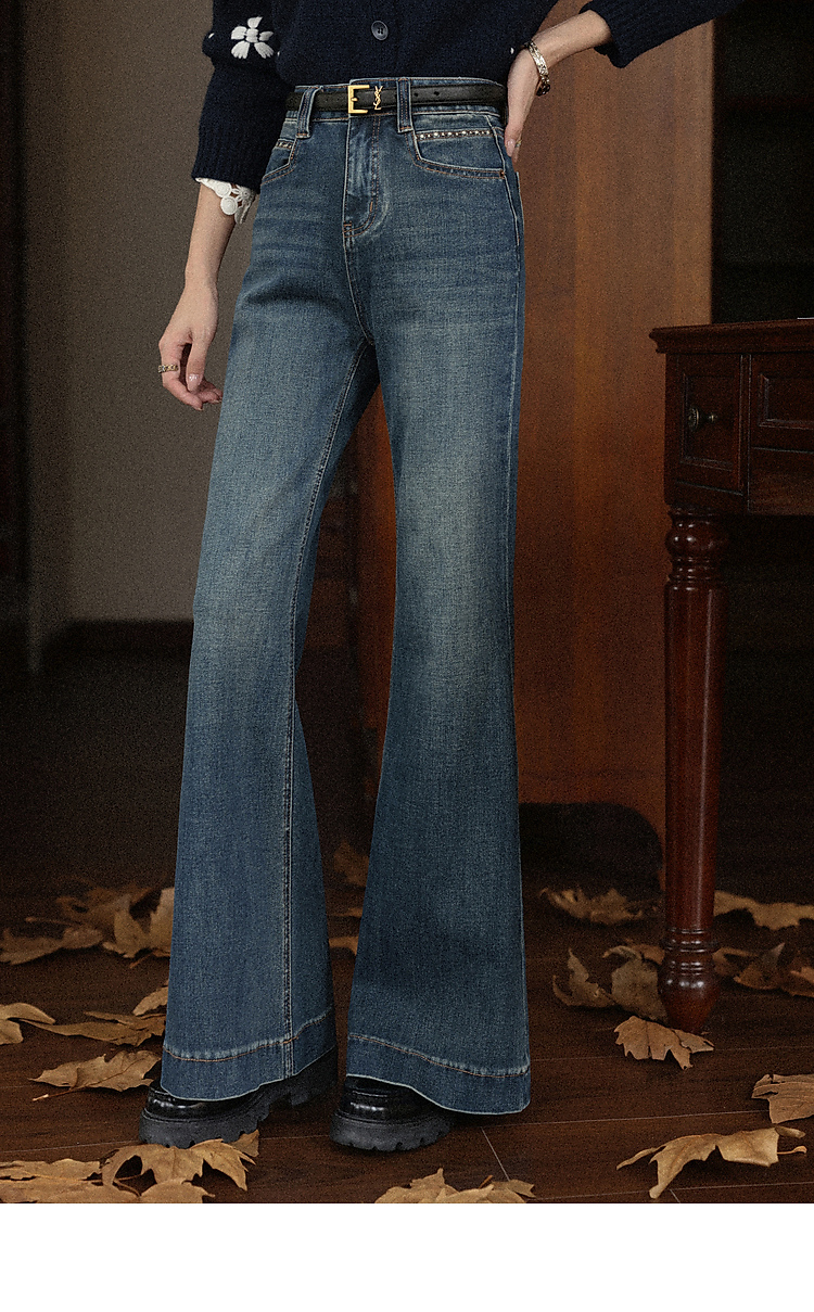 鹿向南「霓甜巴黎」蓝色宽松微喇牛仔裤初秋修身显瘦阔腿长裤女款