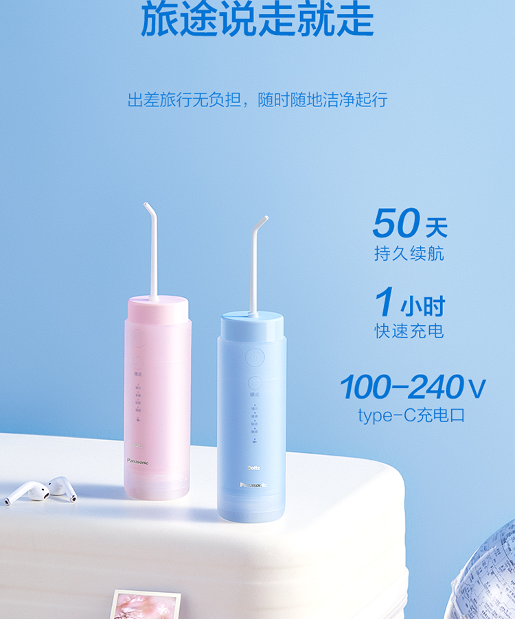 松下(Panasonic)冲牙器洗牙器牙线便携式高频脉冲水流小巧便携伸缩小圆管DJ33/官方标配