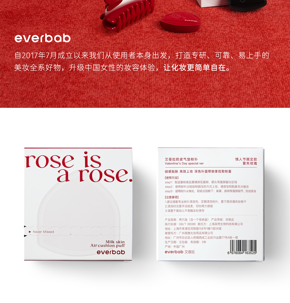 everbab 奶皮气垫粉扑 丝绒款 雾失玫瑰