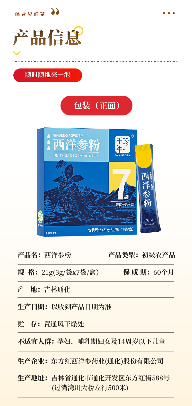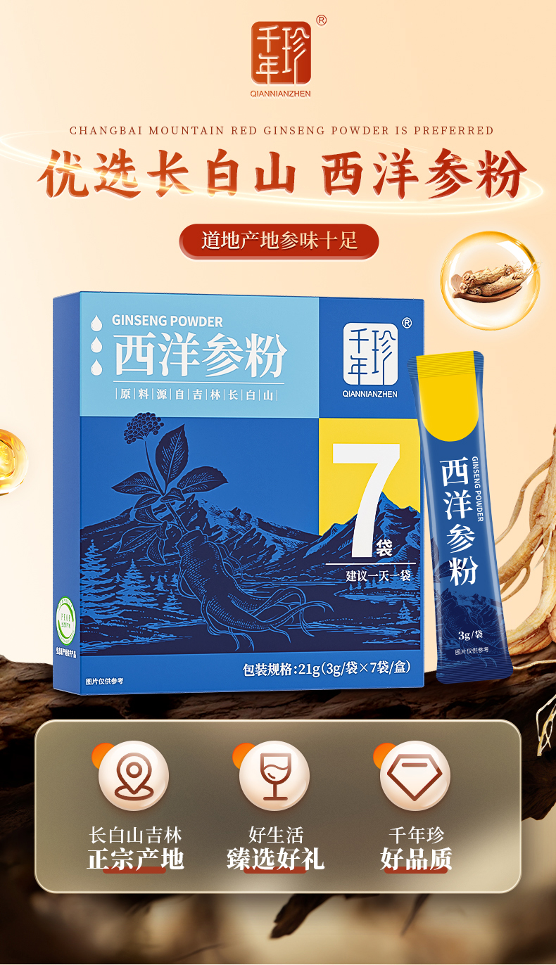 千年珍 西洋参粉21g(3g*7条)
